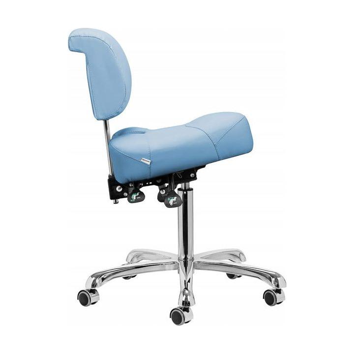 Met hoogte aanpassing van 55-72 cm, verstelbare rugleuning en gasvering, is deze blauwe zadelkruk ergonomisch.