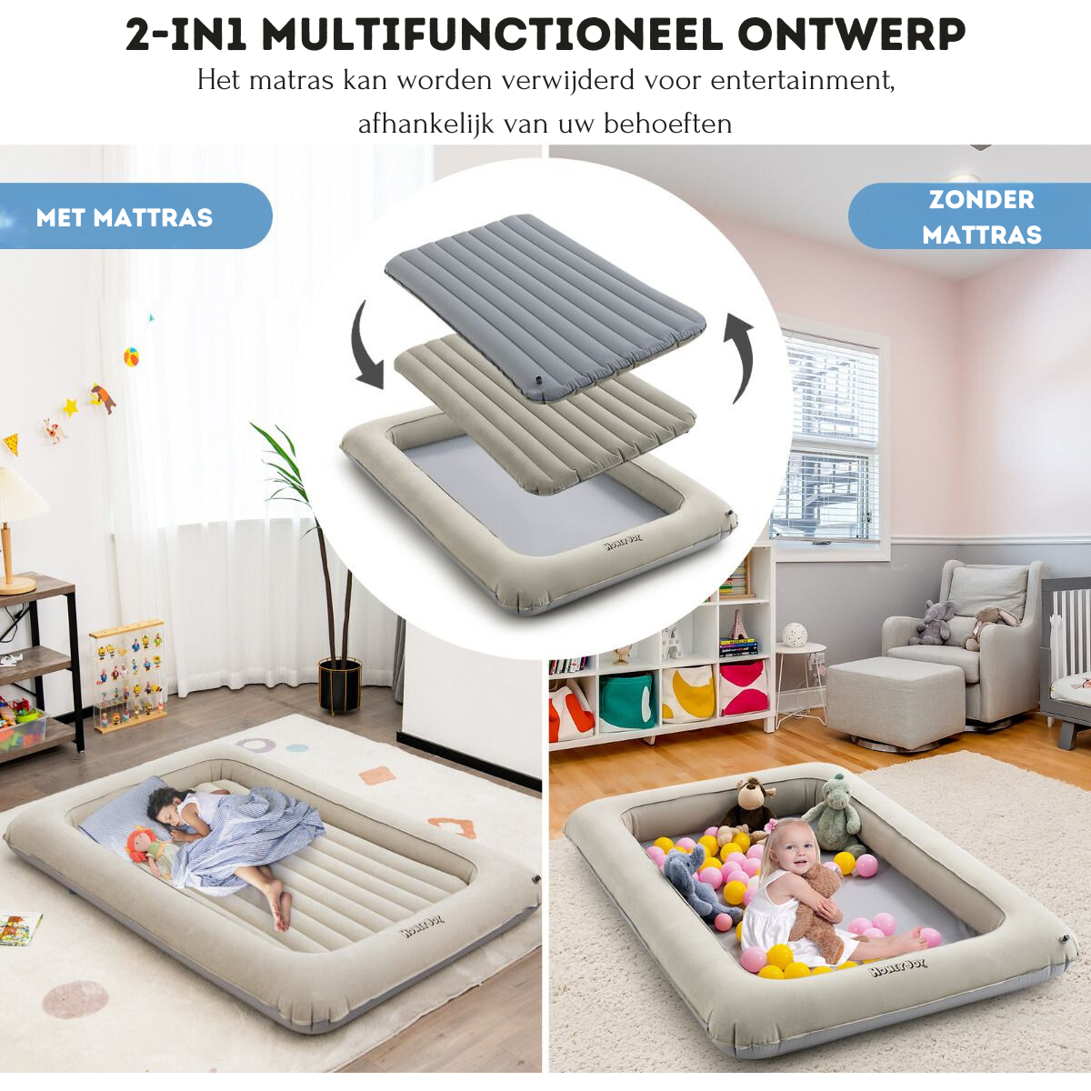 2-in-1 luchtbed & speelplek – Te gebruiken als peuter luchtmatras, ballenbak of veilige speelzone.