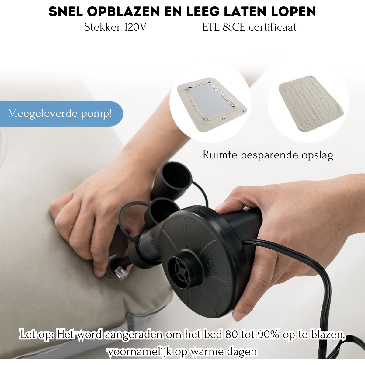 Inclusief pomp – Dit opblaasbare peuterbed is binnen enkele minuten klaar voor gebruik.