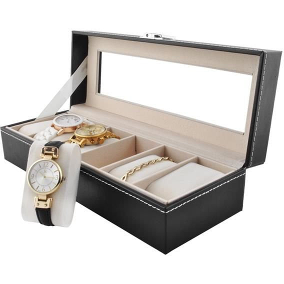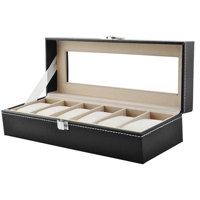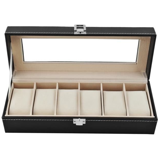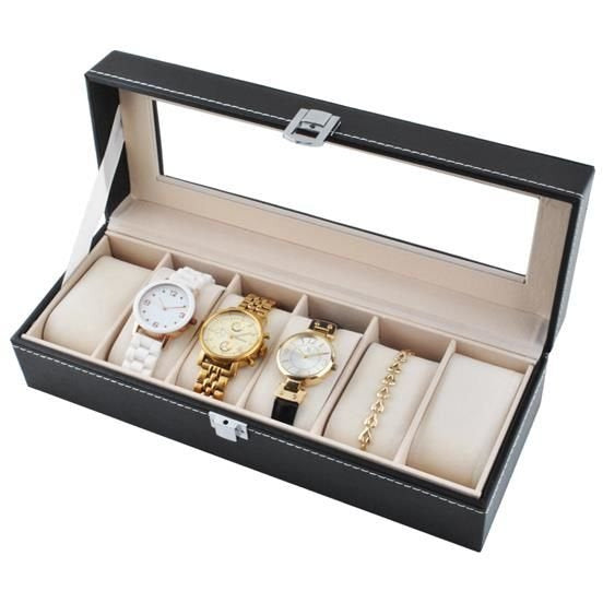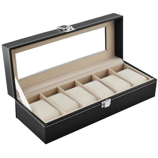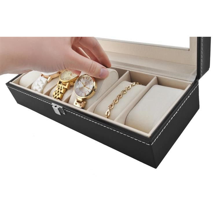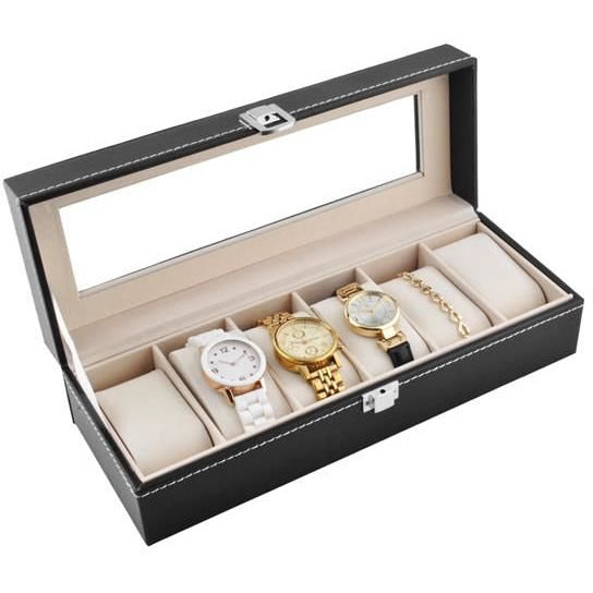 Horlogedoos - Luxe zwarte horloge box - Geschikt voor Horloges en Sieraden - 6 Compartimenten met 6 Kussentjes - Acrylglas