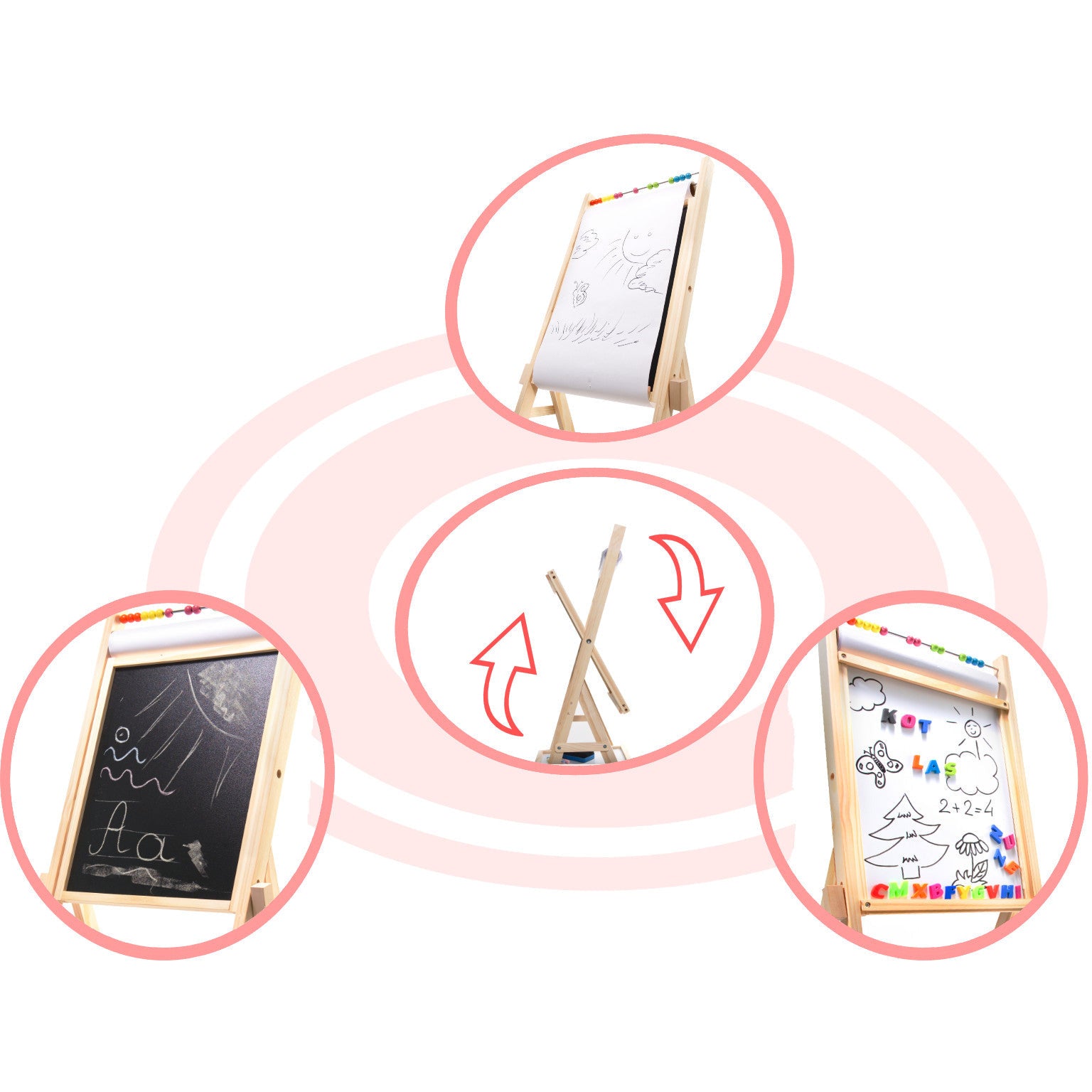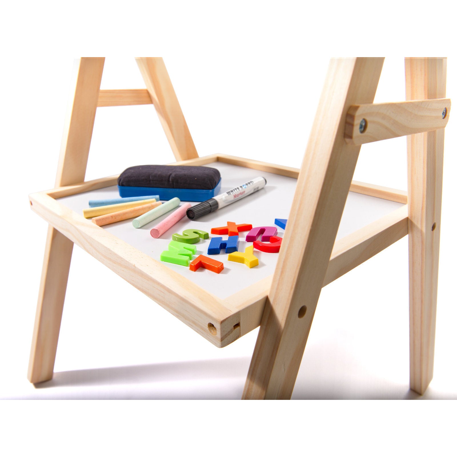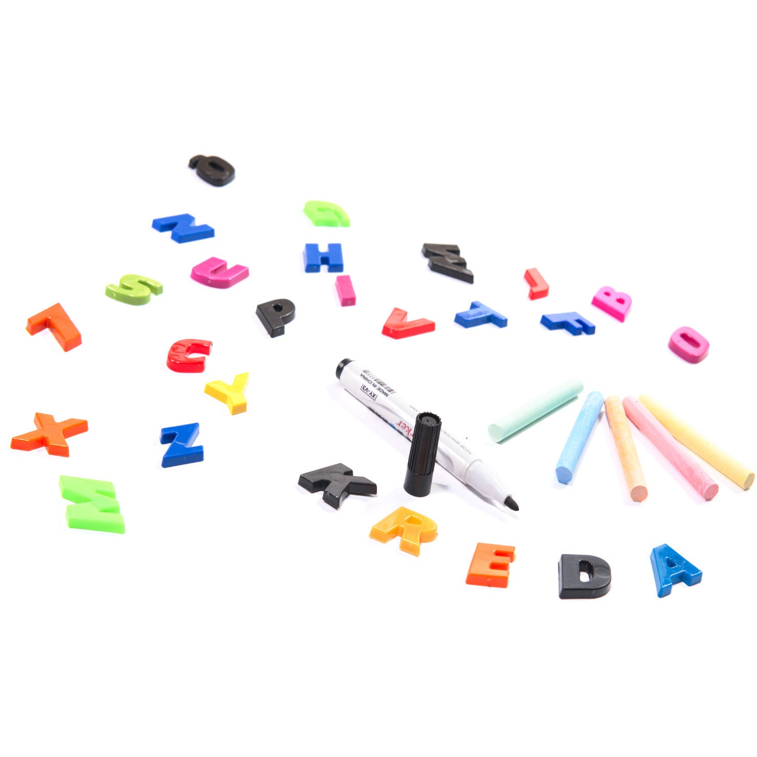 Houten 2 in 1 staand krijtbord en whitboard inclusief magnetische letters krijt en markeerstift- telraam - schoolbord - tekenbord - 39 x 37 x 90 cm