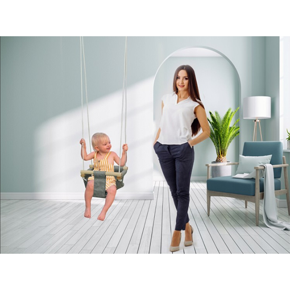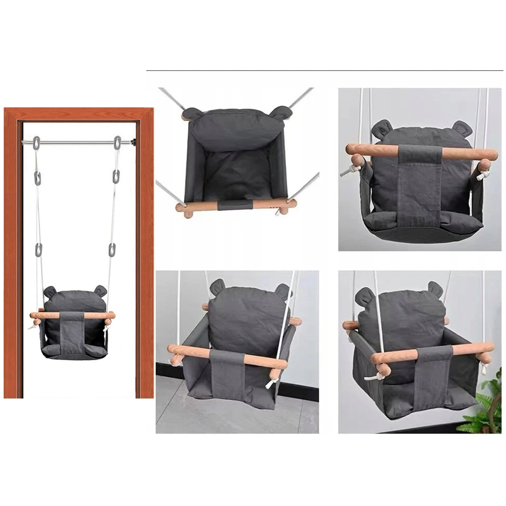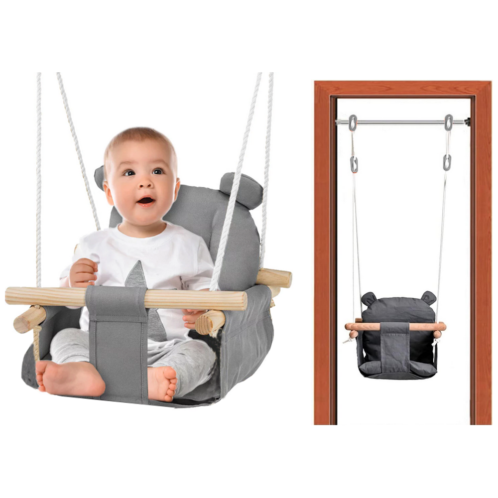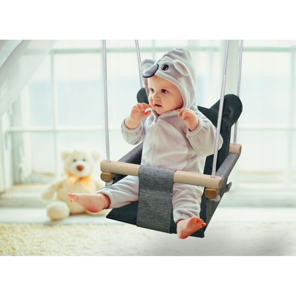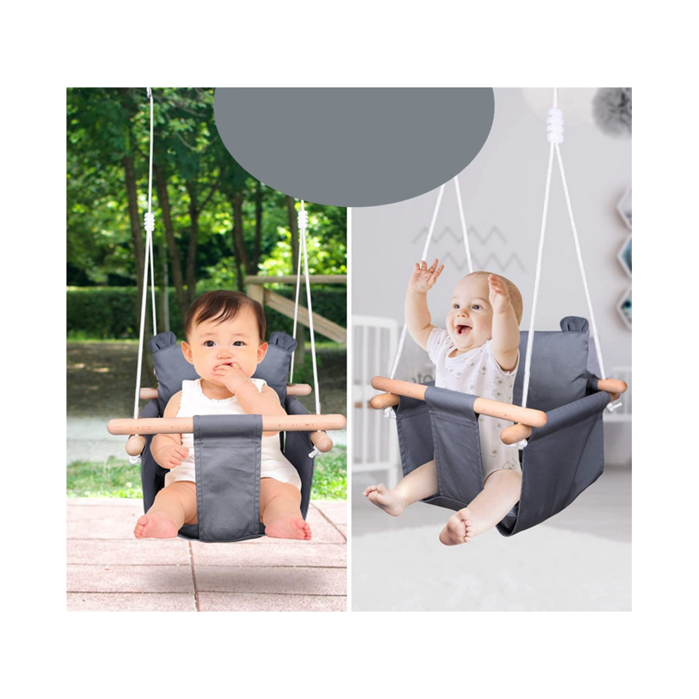 Houten kinder / babyschommel grijs - in hoogte verstelbaar - voor binnen of buiten