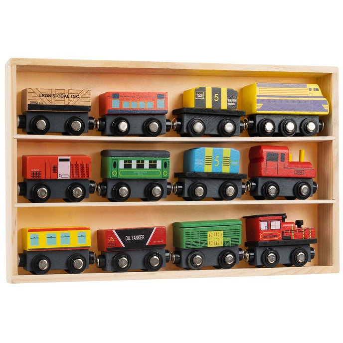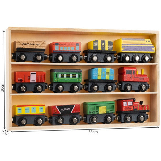 Houten speelgoed trein 12-delig in mooie organizer 33 x 20 x 3 cm
