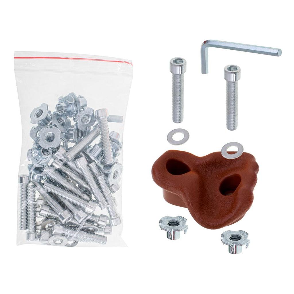 De set bevat alle benodigde onderdelen en gereedschap om de klimstenen aan de muur te bevestigen. Geen gedoe, snel genieten!