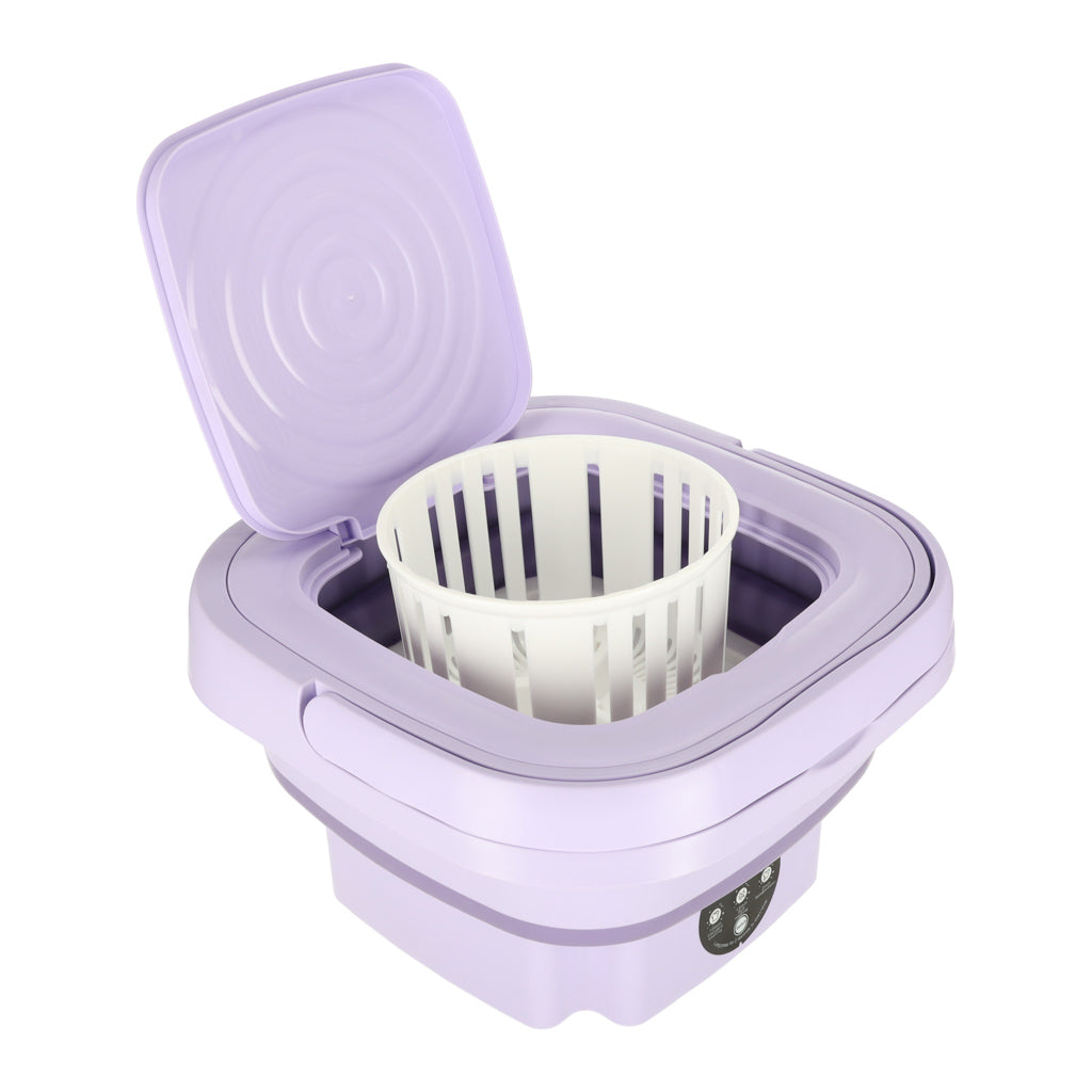 In opgevouwen toestand heeft deze handige wasmachine compacte afmetingen van 30 cm x 30 cm x 12 cm, waardoor hij gemakkelijk in je bagage past en weinig ruimte inneemt.