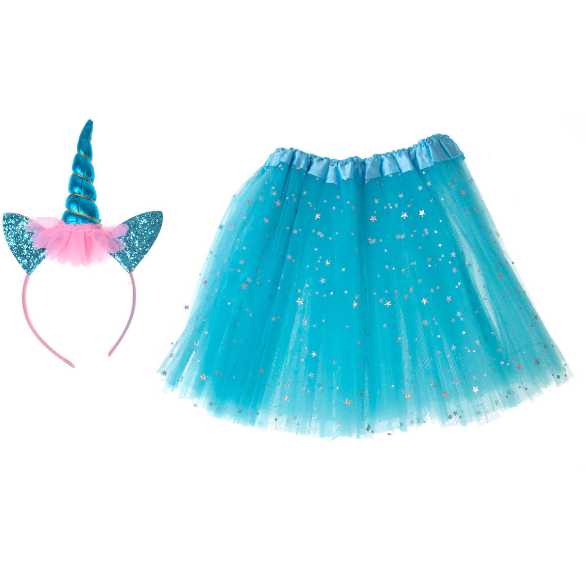 Kinder verkleedset / carnaval outfit unicorn glitters met tutu blauw