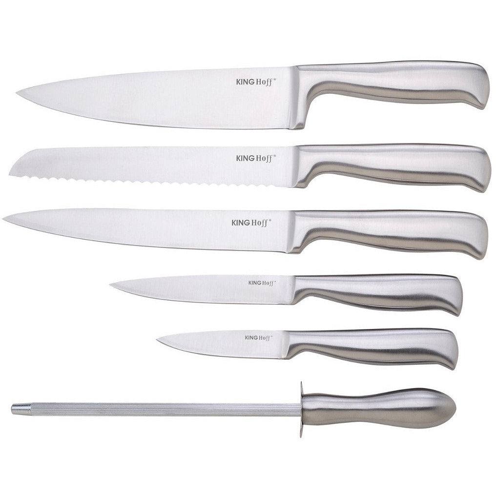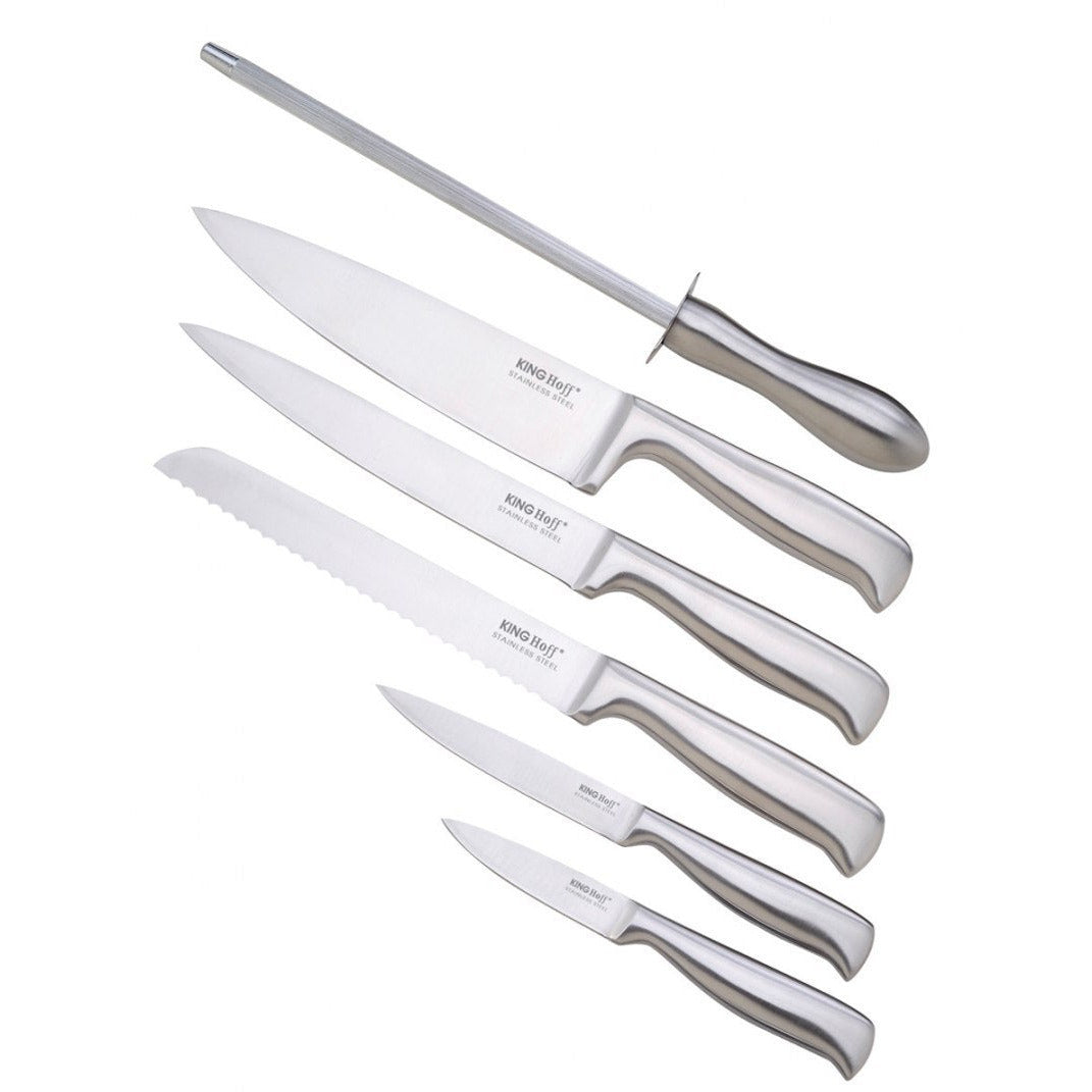 Kinghoff 7-delige messenset met houten blok inclusief aanzetstaal RVS