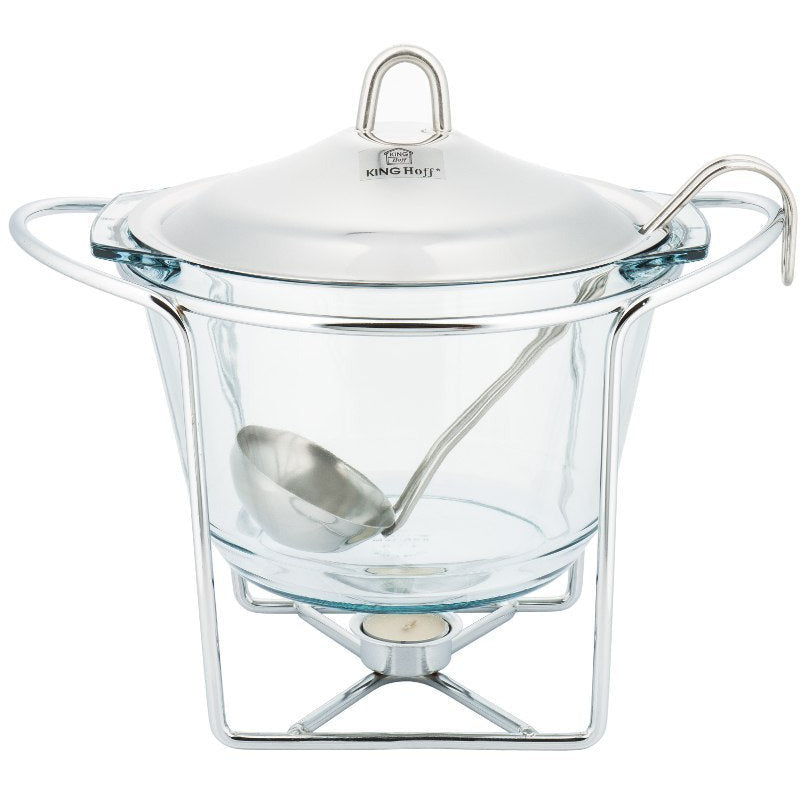 Kinghoff KH-1413 chafing dish en warmhoudbak van glas pot vorm 4L zilver / transparant