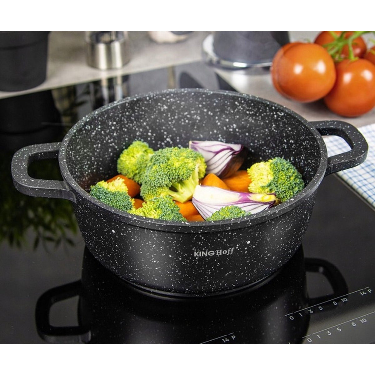 Kinghoff KH-1597 ronde braadpan met glazen deksel Ø 28 cm aluminium 6.8L - ook geschikt voor inductie