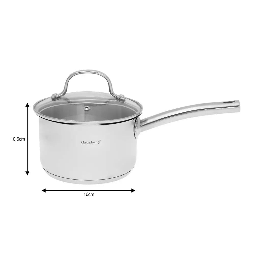 Klausberg 7210 steelpan/sauspan met deksel en maatverdeling 16 cm 1.8L
