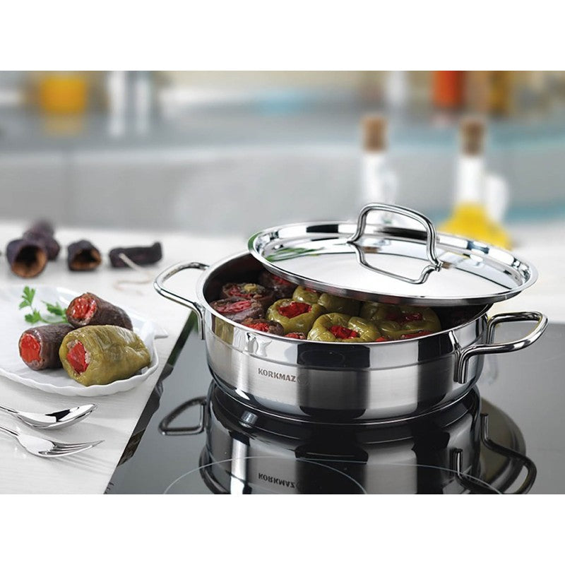 Korkmaz Alfa 9-delige 18/10 RVS professionele zware pannenset met koekenpan - Geschikt voor alle warmtebronnen