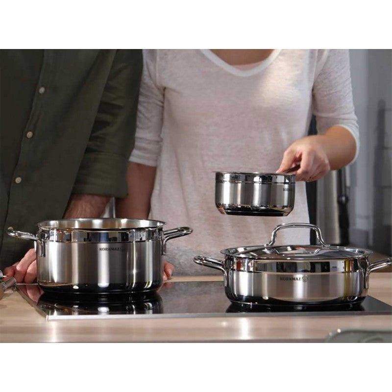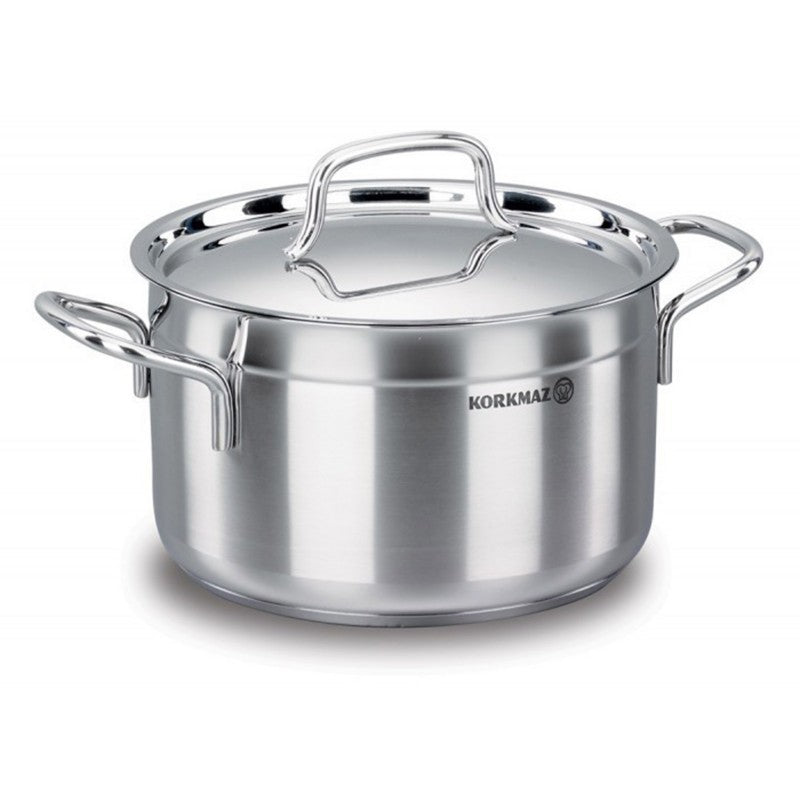 Ben je op zoek naar een grote RVS kookpan met deksel, geschikt voor inductie en alle andere warmtebronnen? Dan is de Korkmaz Alfa Serie kookpan 5.5 liter jouw perfecte keukenpartner. Deze stijlvolle en duurzame soeppan is ontworpen voor dagelijks intensief gebruik en levert professionele prestaties op elk fornuis.