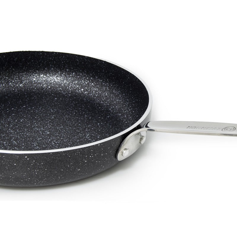 De Korkmaz Galaksi koekenpan 24 cm is een moderne, lichtgewicht pan met een robuuste volkanit non-stick coating en een stijlvolle marmerlook afwerking. Dankzij het gebruik van gerecycled aluminium, een gezonde antiaanbaklaag zonder PFOA, lood of cadmium, en een RVS handgreep, is deze pan perfect voor wie gezond, duurzaam én praktisch wil koken.