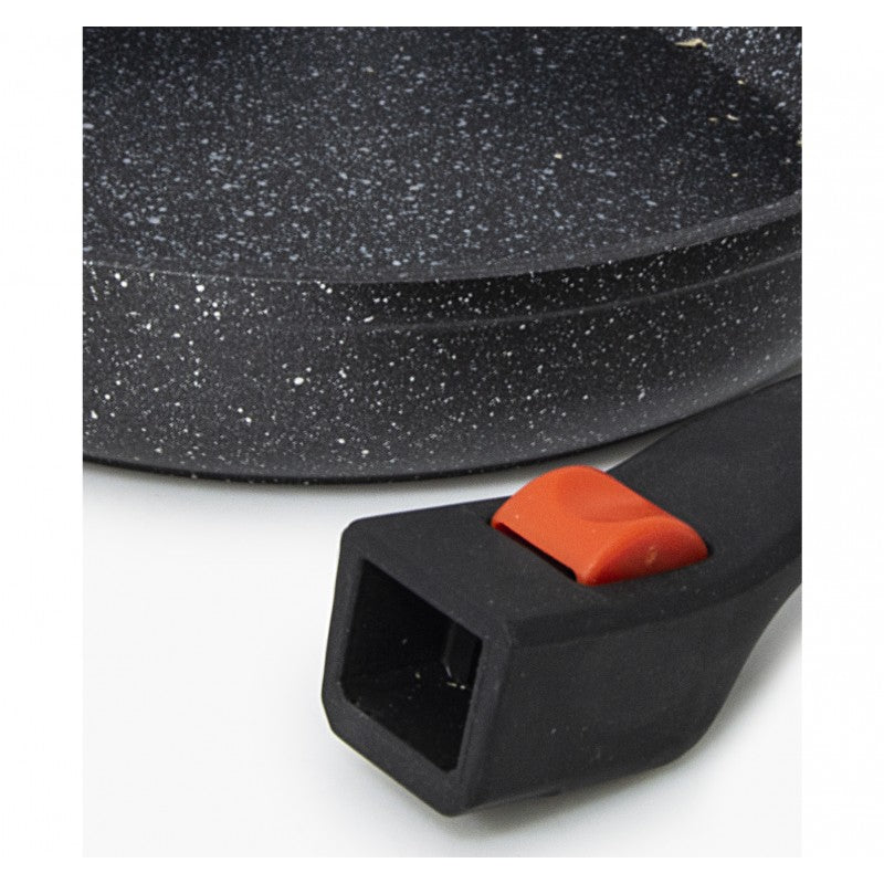 De 5-laags krasvaste antiaanbaklaag voorkomt aanbakken en maakt schoonmaken eenvoudig. Dankzij het afneembare handvat ruim je de pan makkelijk op, en past hij zelfs in de vaatwasser zonder gedoe. De pan is vervaardigd uit gerecycled aluminium, volledig vrij van schadelijke stoffen, en geschikt voor inductie en alle andere warmtebronnen.