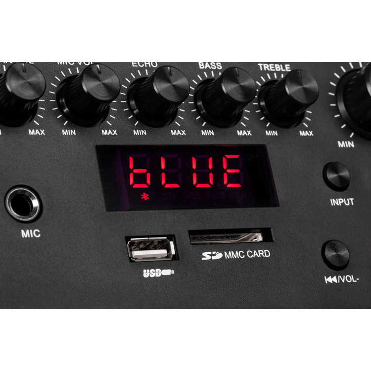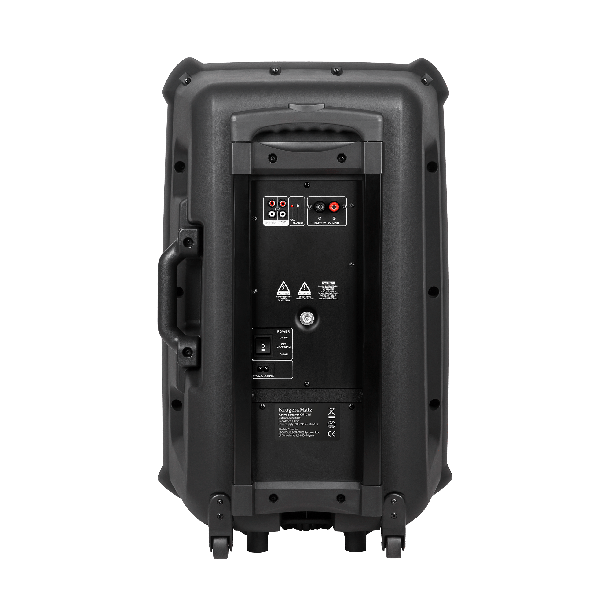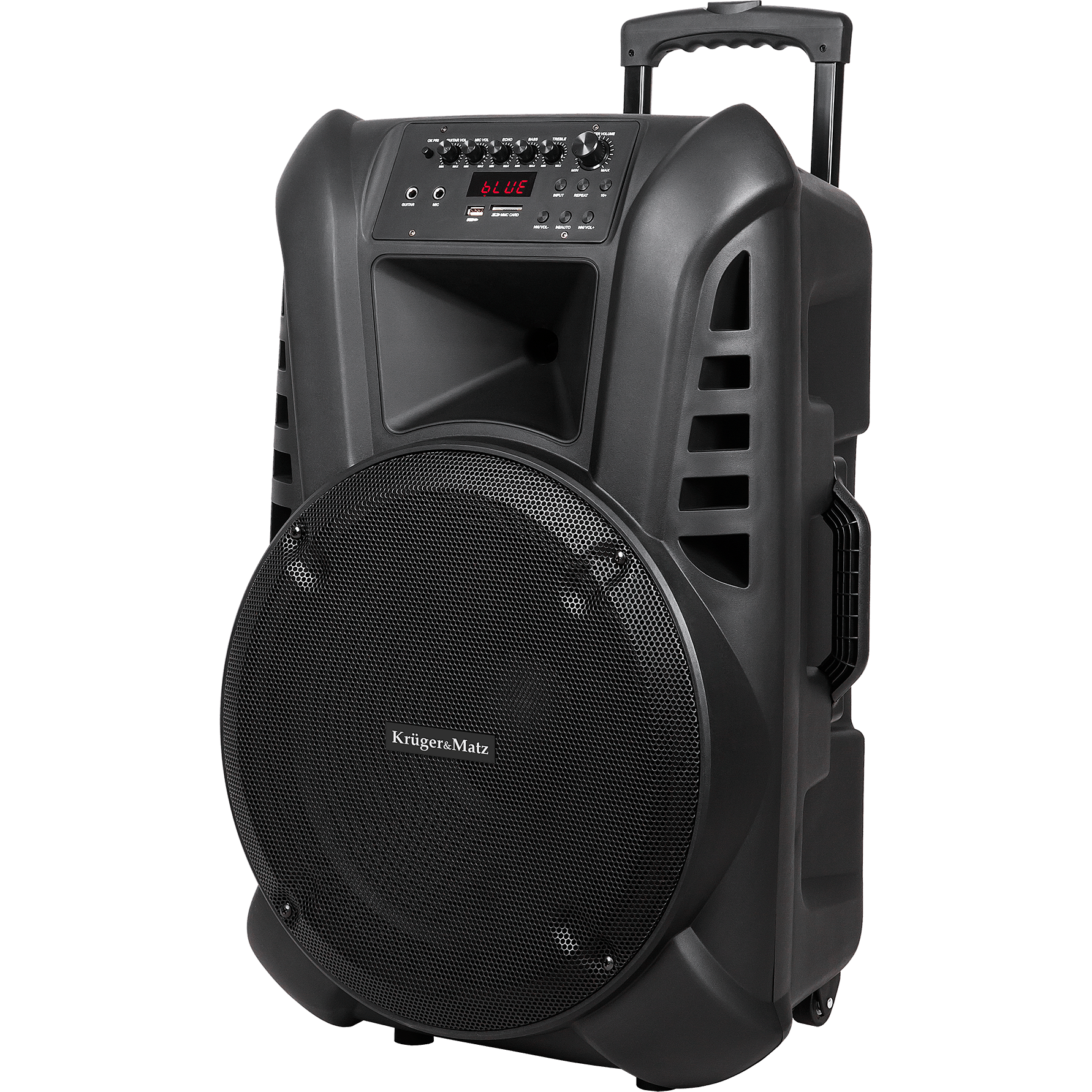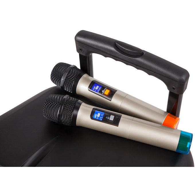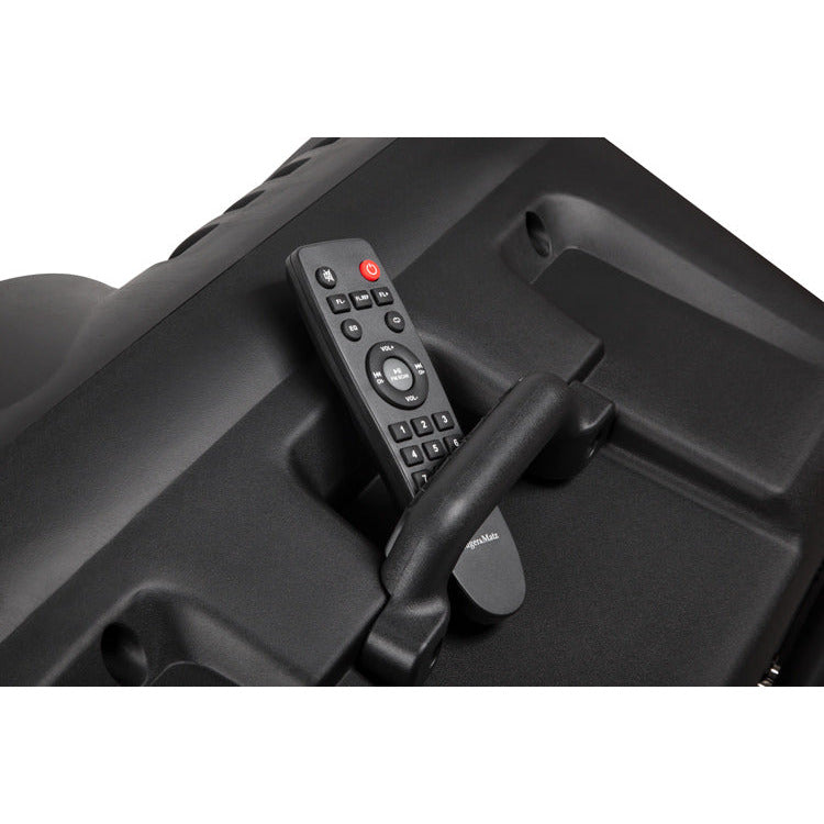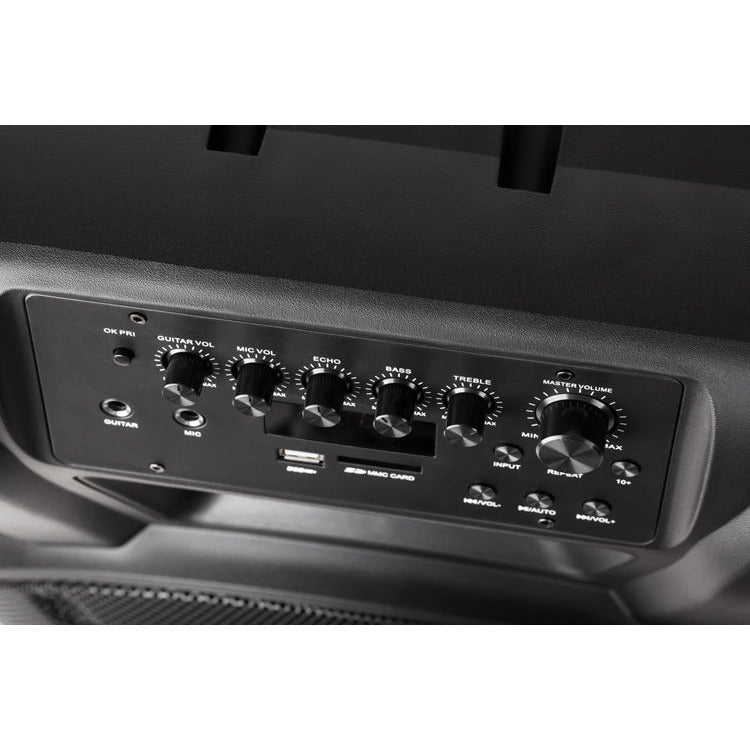 De Krüger & Matz KM1715 is een echte all-round mobiele geluidsinstallatie met o.a. Bluetooth en een vermogen van 60 watt die van alle gemakken is voorzien. De geluidsinstallatie wordt geleverd met 2 draadloze microfoons. De luidspreker is voorzien van een uitschuifbare handgreep en wieltjes om de installatie gemakkelijk te vervoeren. De Party speaker beschikt over meerdere ingangen en uitgangen om bijvoorbeeld een gitaar of microfoon aan te sluiten, tevens is de box voorzien van bluetooth en FM radio. Ben je niet in de buurt van de installatie, dan kan deze via de meegeleverde afstandsbediening bediend worden.