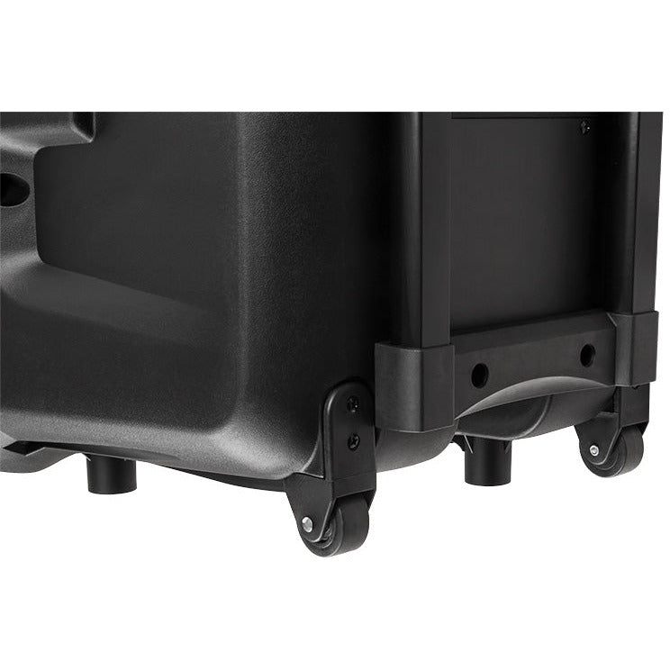 Houd je er niet van om lang op één plek te zijn? Laat je favoriete muziek je altijd volgen! Dankzij het comfortabele handvat en de duurzame wielen vervoer je de box eenvoudig naar de evenementen locatie.
