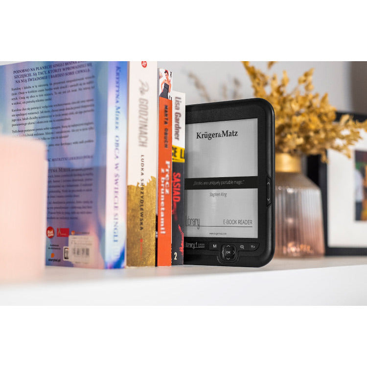 Draag je liever één dik boek in je tas of juist een slank en licht toestel met je favoriete titels, maar ook bestanden en muziek? Uitgerust met een 6"-display is de Kruger&Matz Library 4 e-book reader een handig apparaat, ideaal voor liefhebbers van frequent lezen. Door het handige formaat neemt hij niet veel ruimte in maar heb je wel een mooi scherm om je favoriete boeken te lezen.