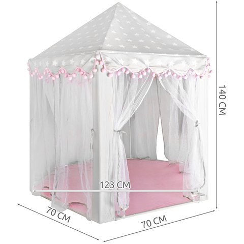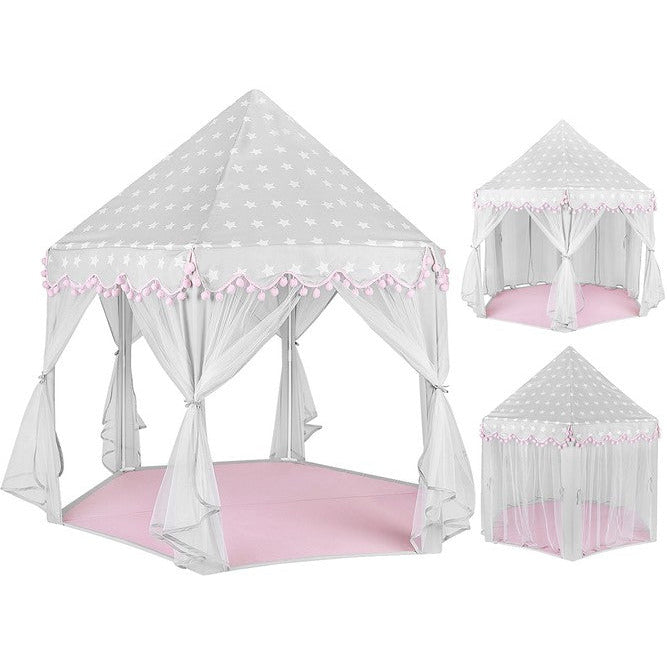 Kruzzel speeltent Princess 140 x 70 x 70 cm wit /grijs - kinder tent tipi voor binnen en buiten huis