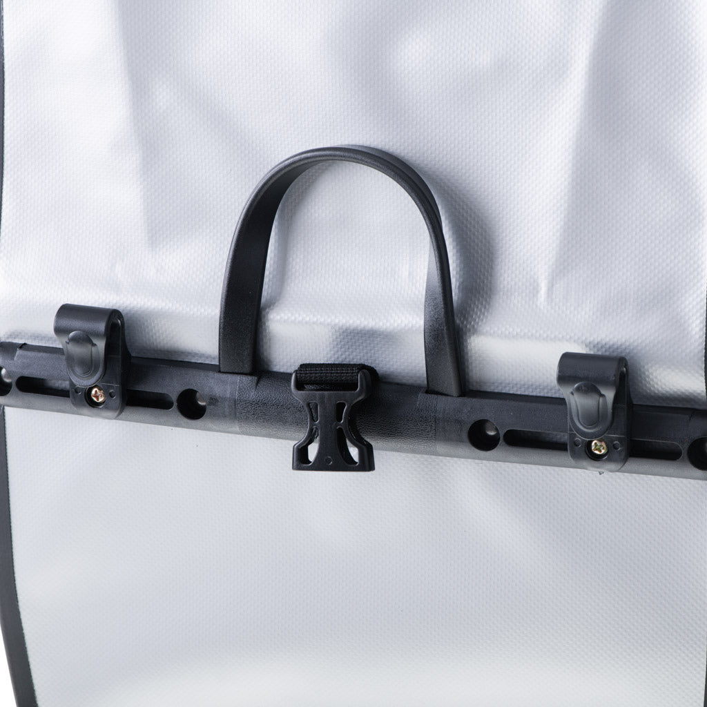 Genoeg ruimte voor al je spullen in deze waterdichte zijfietstas!
