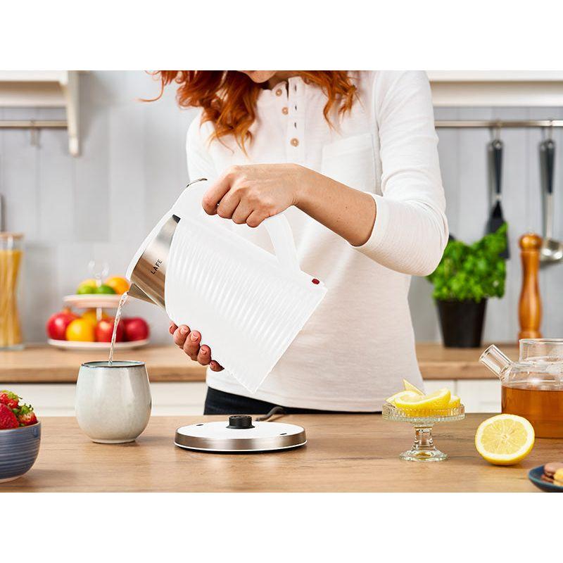 - Met de Lafe Elegant White elektrische waterkoker heb jij altijd snel kokend water tot je beschikking.