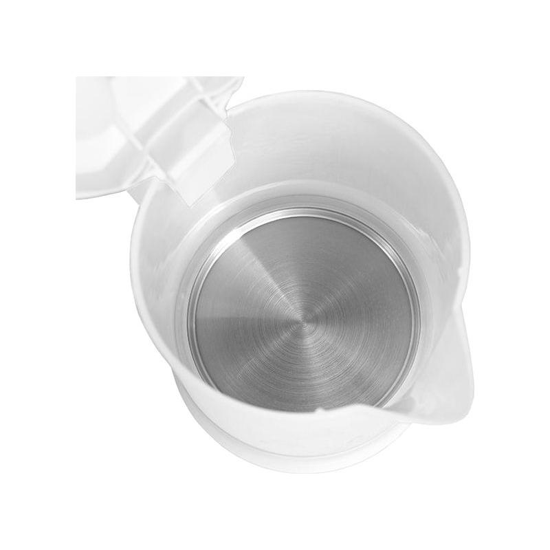 De waterkoker wordt geleverd met twee kopjes en twee lepels, zodat je altijd alles bij de hand hebt voor een lekker kopje thee of koffie.