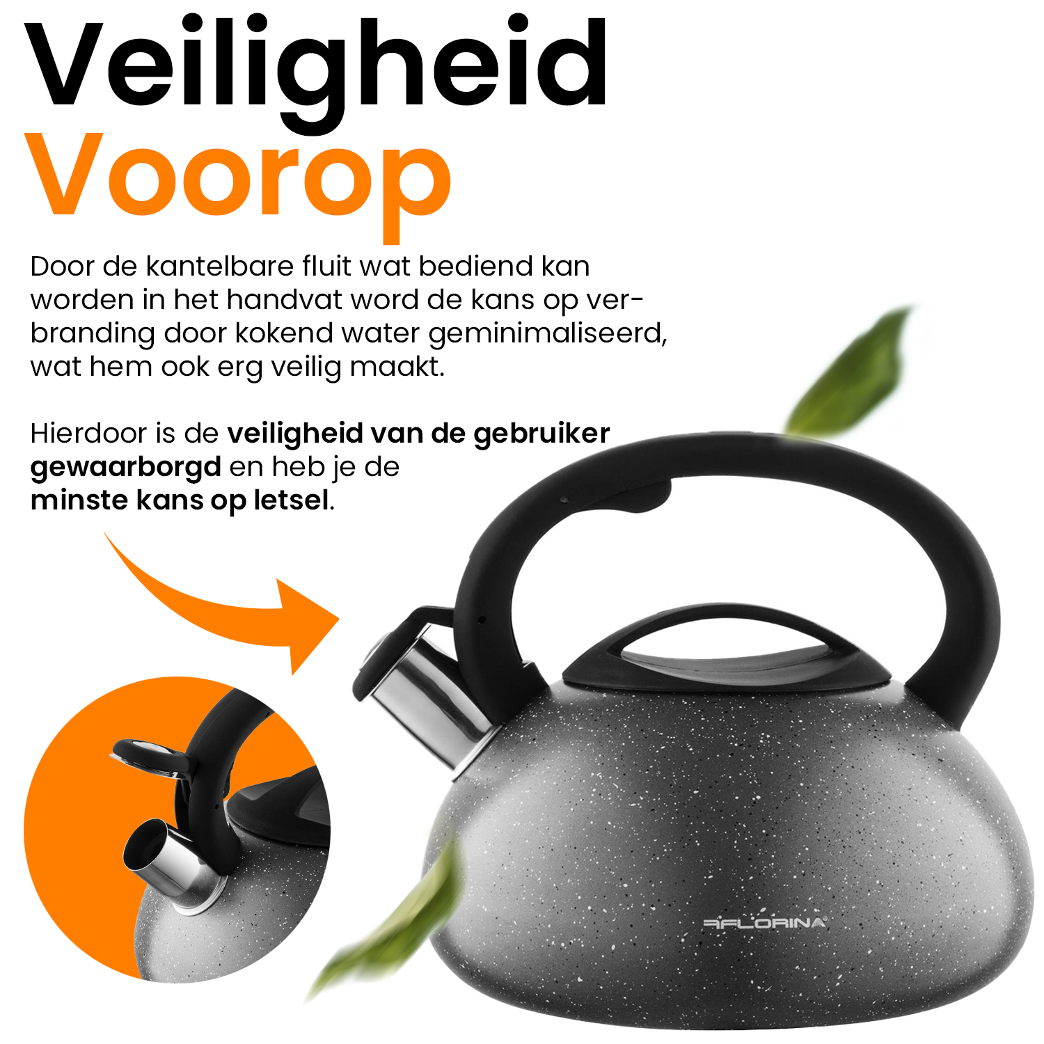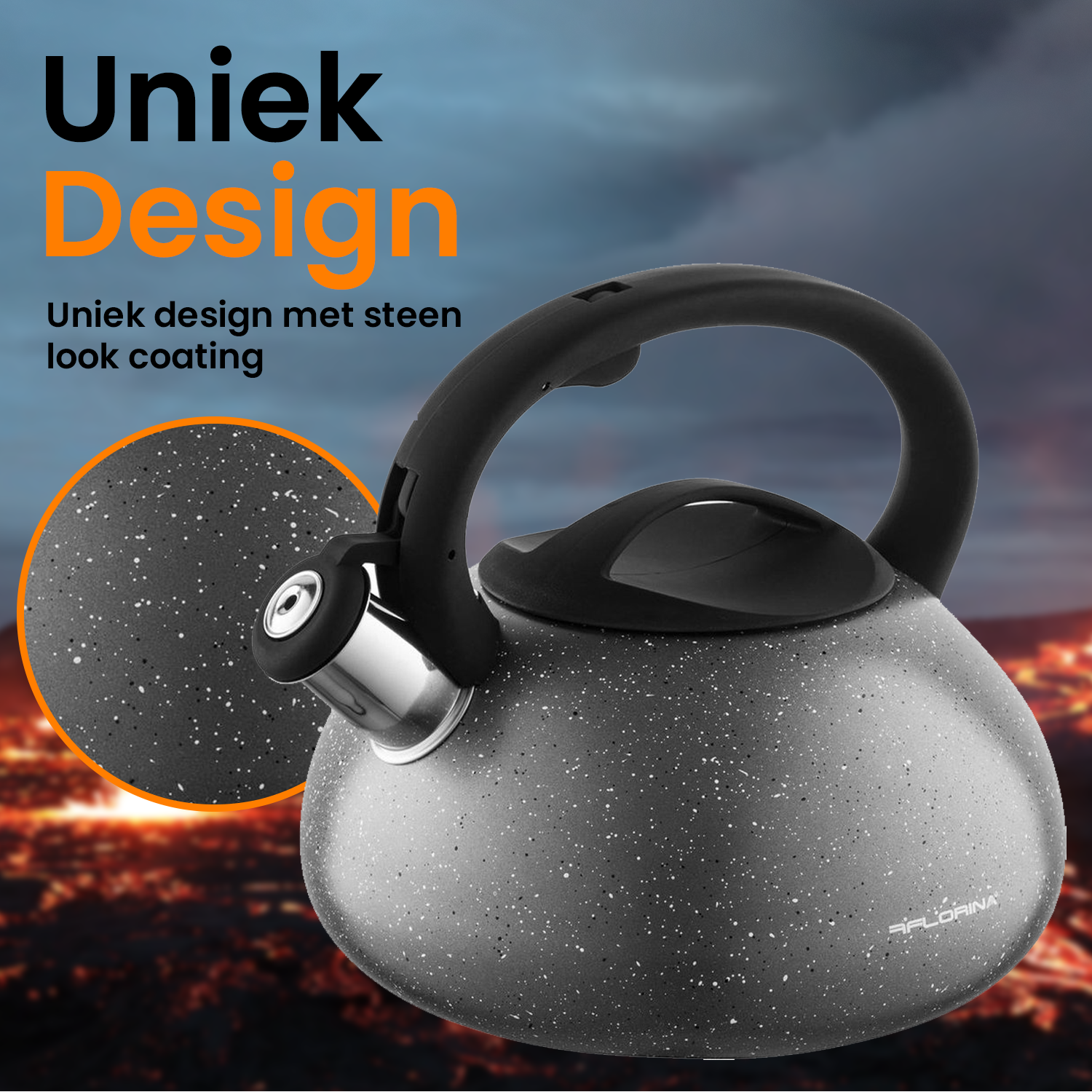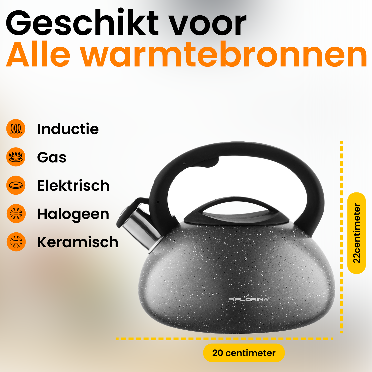 Florina Lava fluitketel RVS zwart / grijs 2.5 Liter - ook geschikt voor inductie