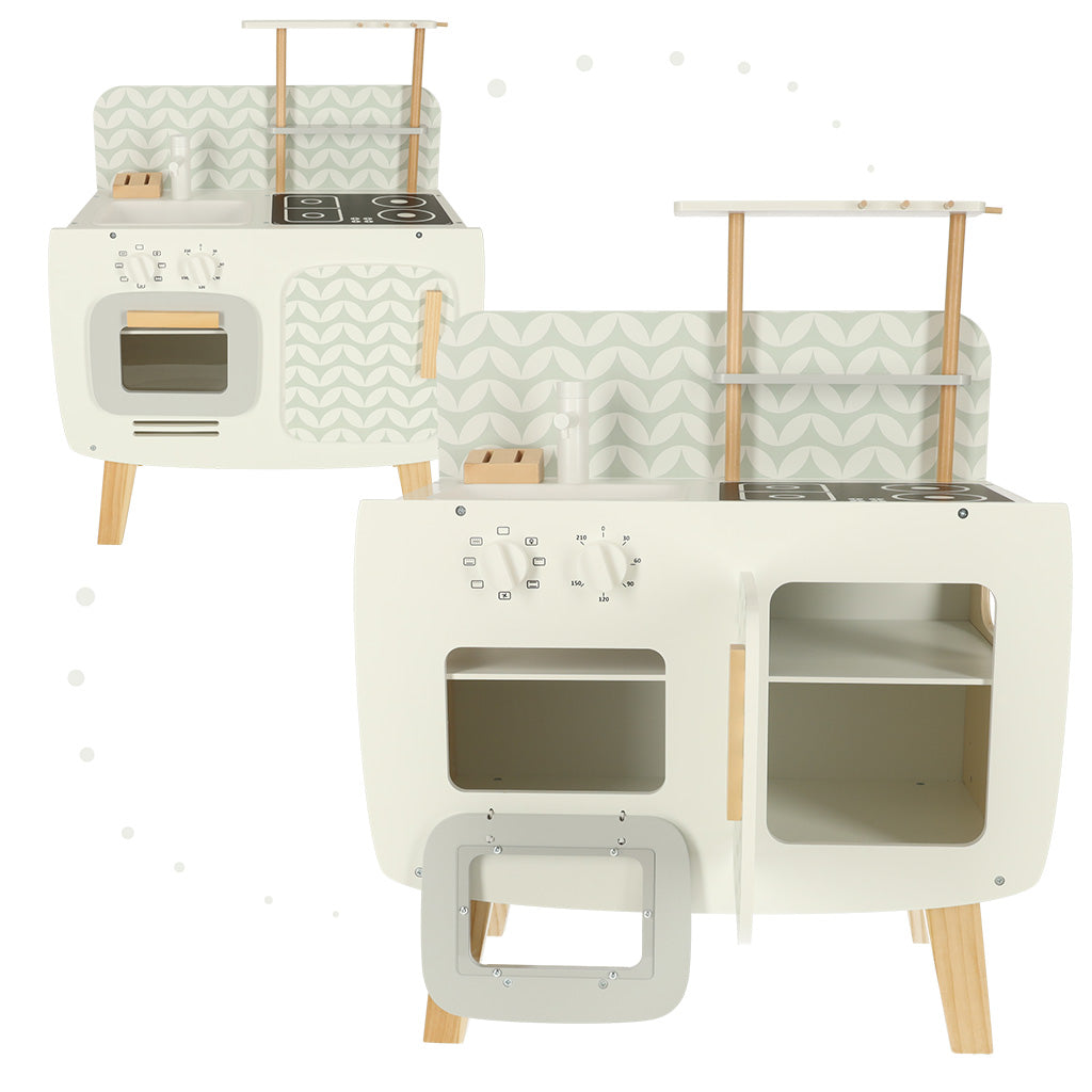 Lulilo vintage retro speelkeuken met accessoires - Speelgoed keuken met kookplaat, wasbak en oven - 58 x 72,7 x 29,2 cm