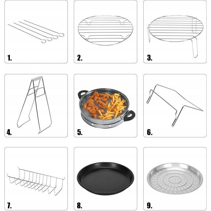 - Veranderd in een air fryer door de extensie ring met braadrooster