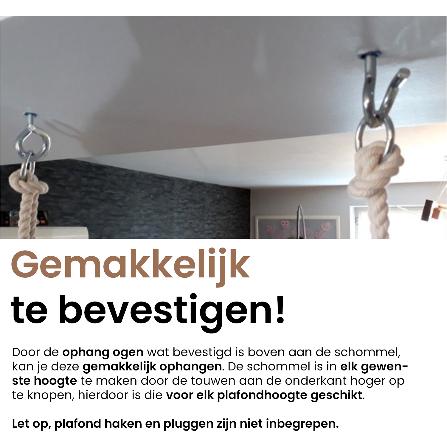 - Lengte van de katoenen touwen: 8 meter (Perfect voor plafondhoogte van 2,5 meter)