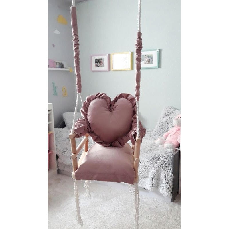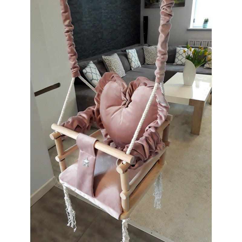 Over deze 3-in-1 kinderschommel met hartvormige kussen