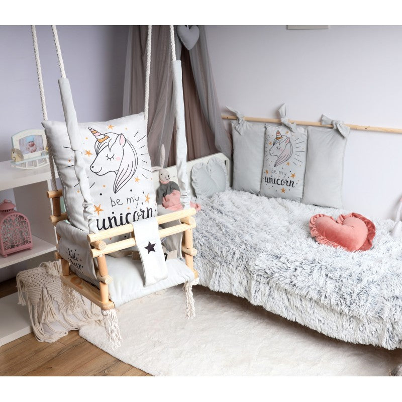 Over deze 3-in-1 kinderschommel met unicorn kussen