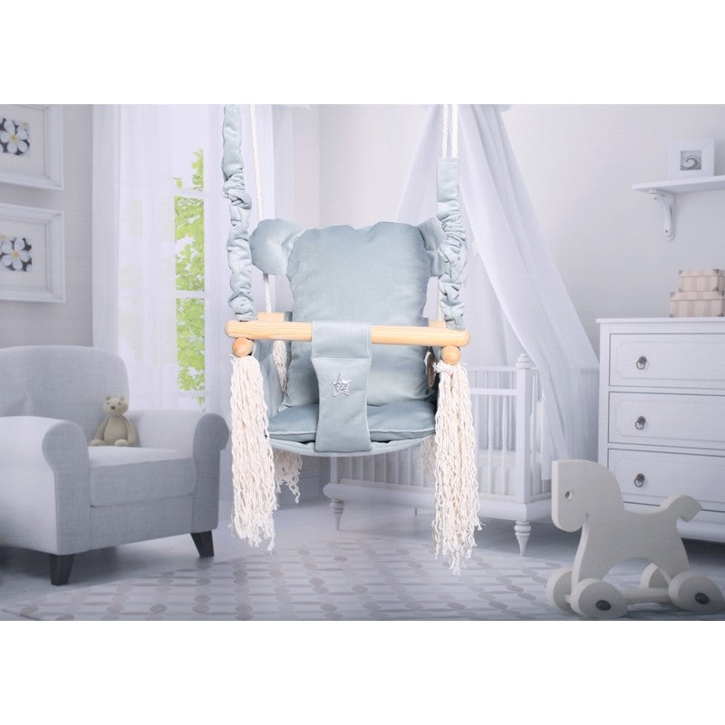 Maar uiterlijk is dit niet alles: de schommel heeft ook een heel veilig ontwerp. Wat heb je aan een mooie schommel als je kind er als een Superman uitvliegt? Alle hoeken van de schommel zijn rond en het houten frame is zeer precies gepolijst. De bedekking van de touwen en de kussentjes zijn gemaakt van enkel het beste Cleanaboo-materiaal: fluweelachtig en pluche tegelijkertijd. Dit materiaal zorgt ervoor dat vocht niet direct in de stof trekt en de schommel makkelijk schoon te houden is. Niet alleen een veilige schommel, maar ook nog eens een schone schommel. Jij blij, je kind blij, iedereen blij.