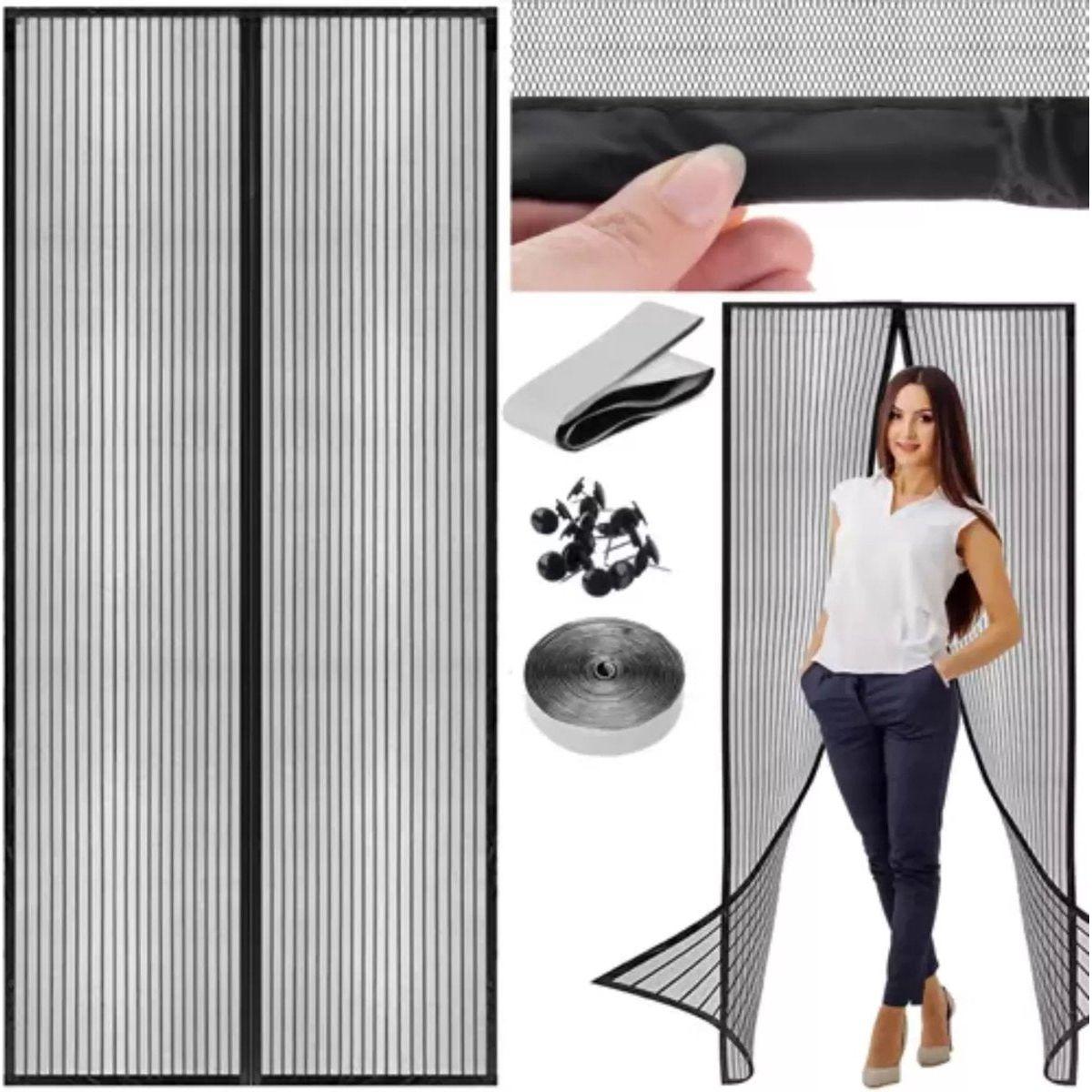 Dit vliegengordijn is zwart van kleur en heeft afmetingen van 210x100cm. Het weegt 0,649 kg en het gewicht in het pakket is 0,748 kg.