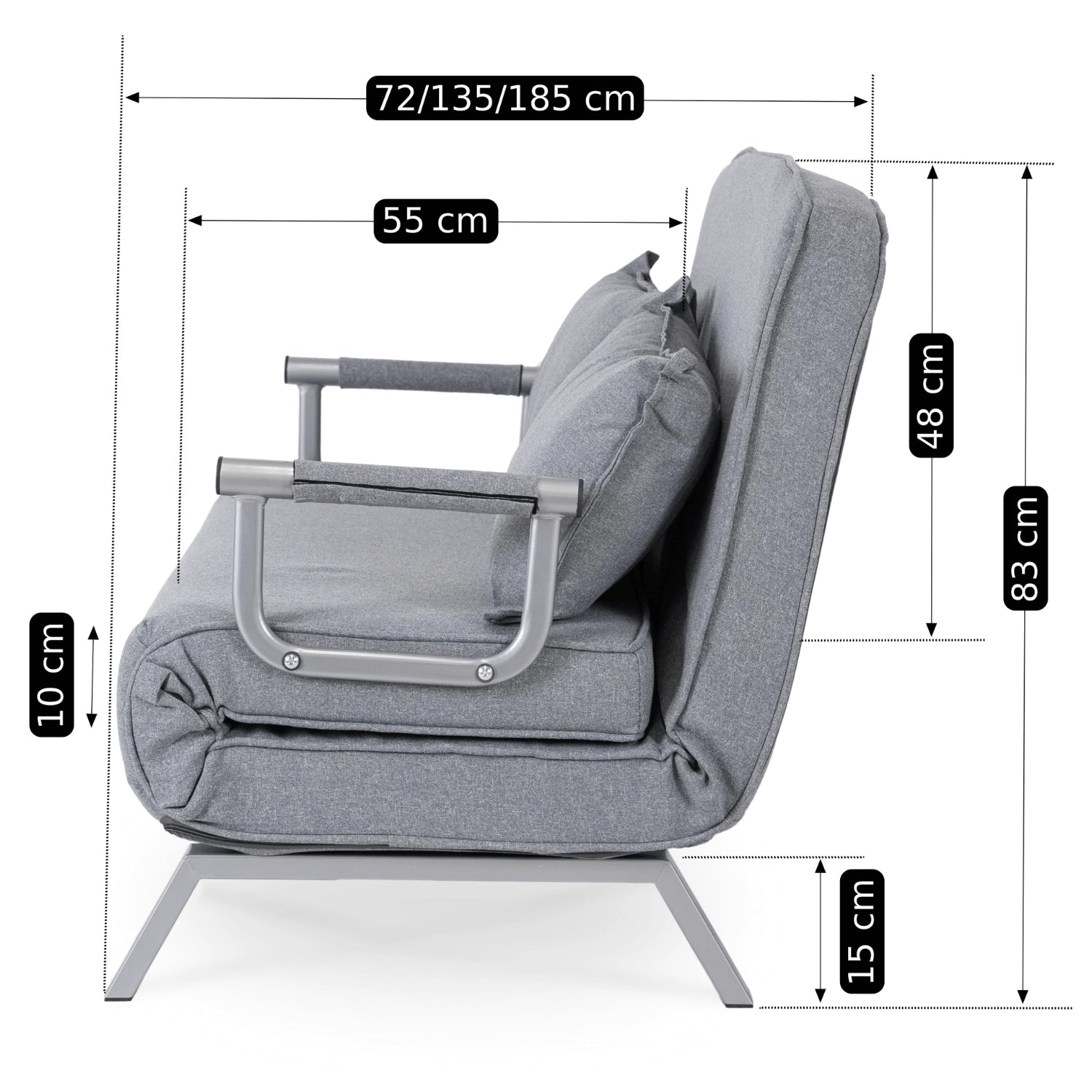 - Praktisch design: armleuningen worden poten en verstelbare rugleuning.