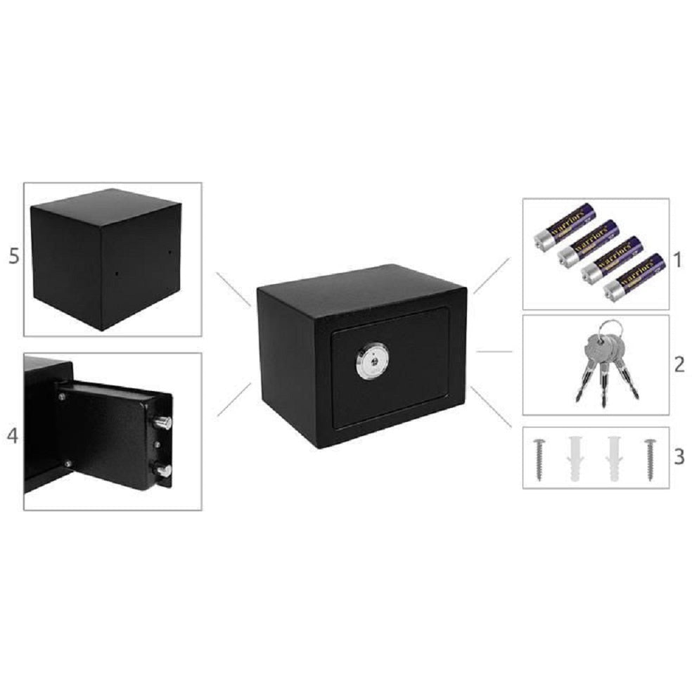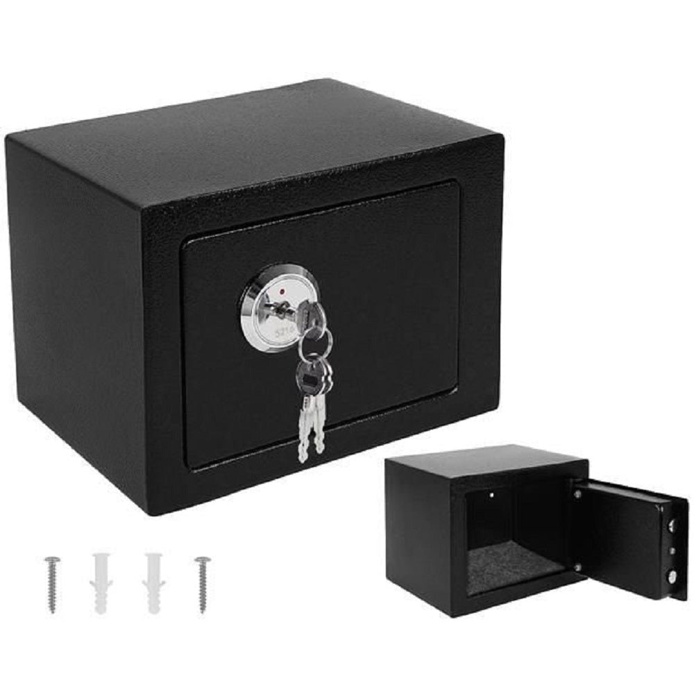 Mechanische stalen kluis met sleutels 23 x 17 x 17cm zwart