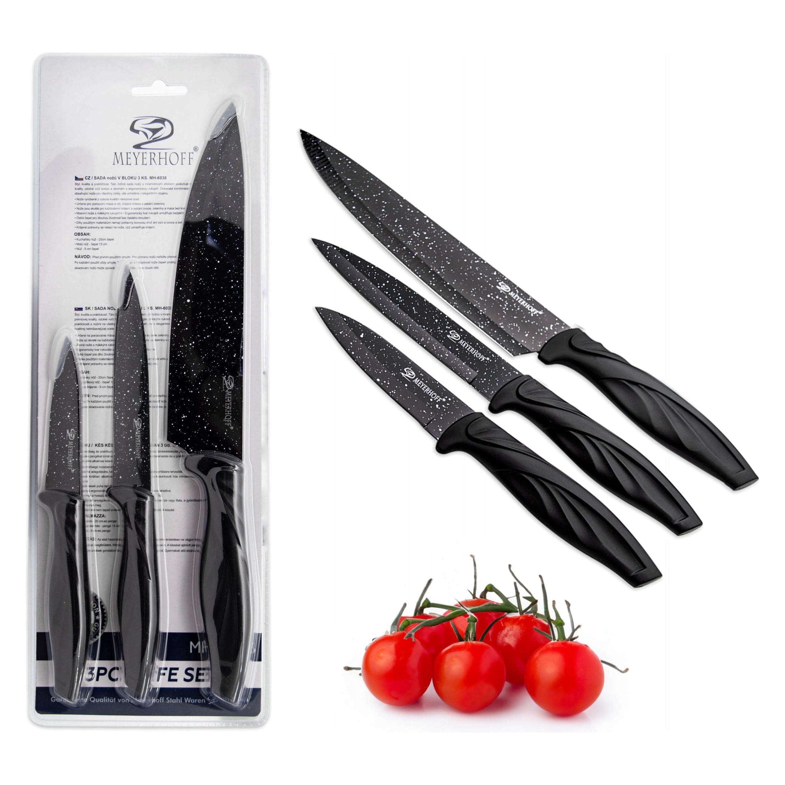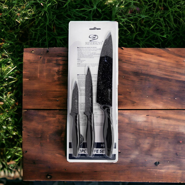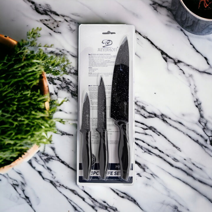 Ben je op zoek naar een betrouwbare messenset die niet alleen functioneel is, maar ook stijlvol oogt? De Meyerhoff 3-delige MH-6038 messenset in zwart biedt alles wat je nodig hebt voor dagelijks snijwerk in de keuken. Deze messen zijn gemaakt van hoogwaardig roestvrij staal en voorzien van een ergonomisch handvat van voedselveilig kunststof – ideaal voor comfort, controle en hygiëne.