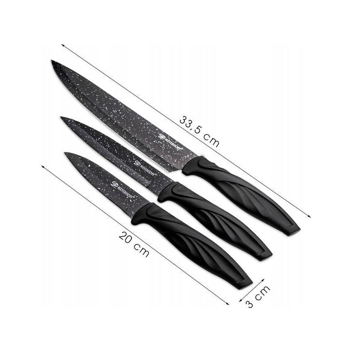 Of je nu groenten snijdt, vlees hakt of brood snijdt, met deze set heb je altijd het juiste mes bij de hand. Dankzij het moderne ontwerp en de strakke zwarte kleur is deze set bovendien een stijlvolle toevoeging aan elke keuken.
