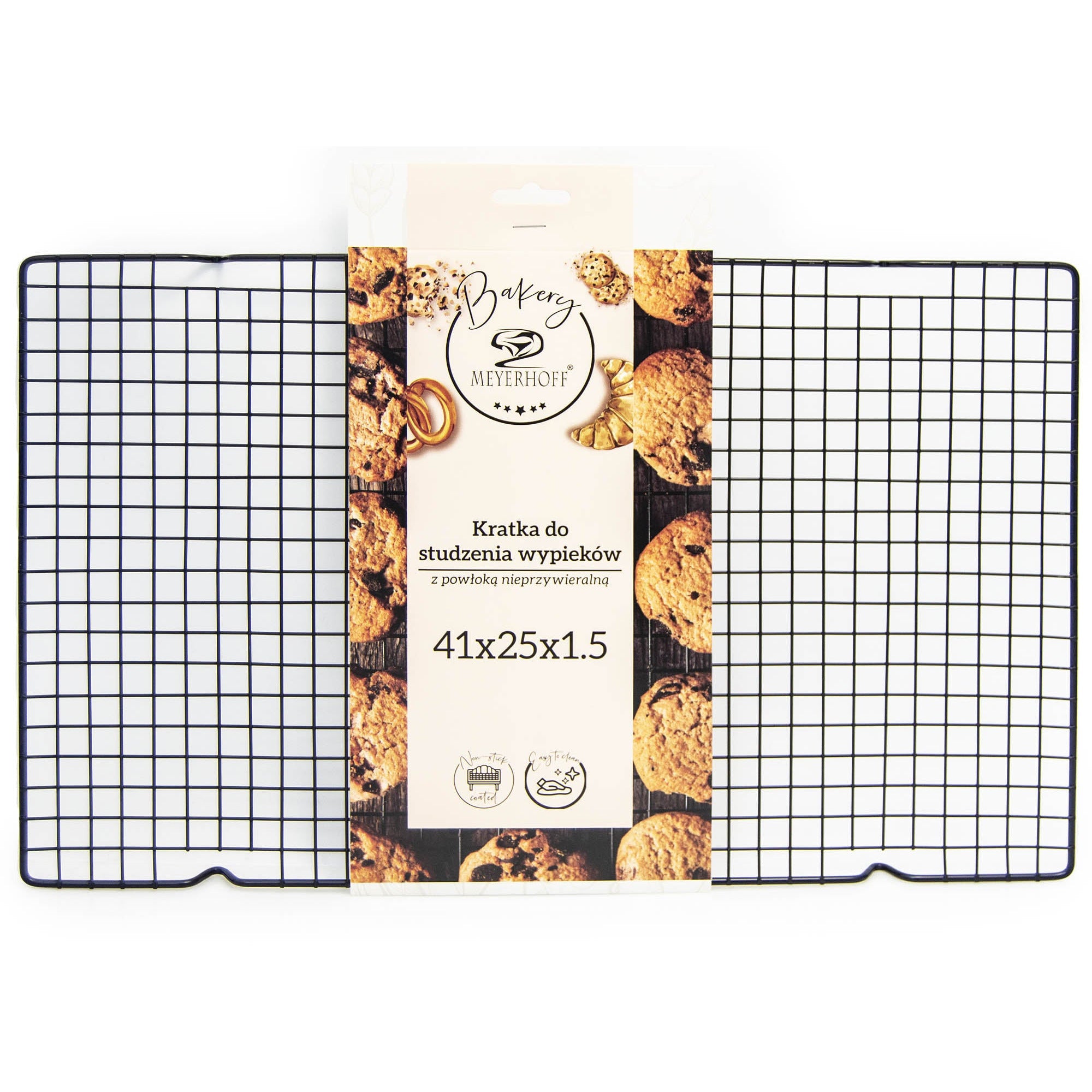 Heb je net een heerlijke taart, cake of koekjes uit de oven gehaald? Laat ze dan perfect en gelijkmatig afkoelen op het Meyerhoff Bakery afkoelrek. Met een formaat van 41 x 25 x 1,5 cm, een duurzaam metalen frame en een compact, rechthoekig ontwerp, is dit zwarte taartrooster de ideale tool voor elke thuisbakker. Niet alleen zorgt het voor een betere textuur en smaak van je gebak, het is ook nog eens makkelijk op te bergen dankzij het slanke profiel.