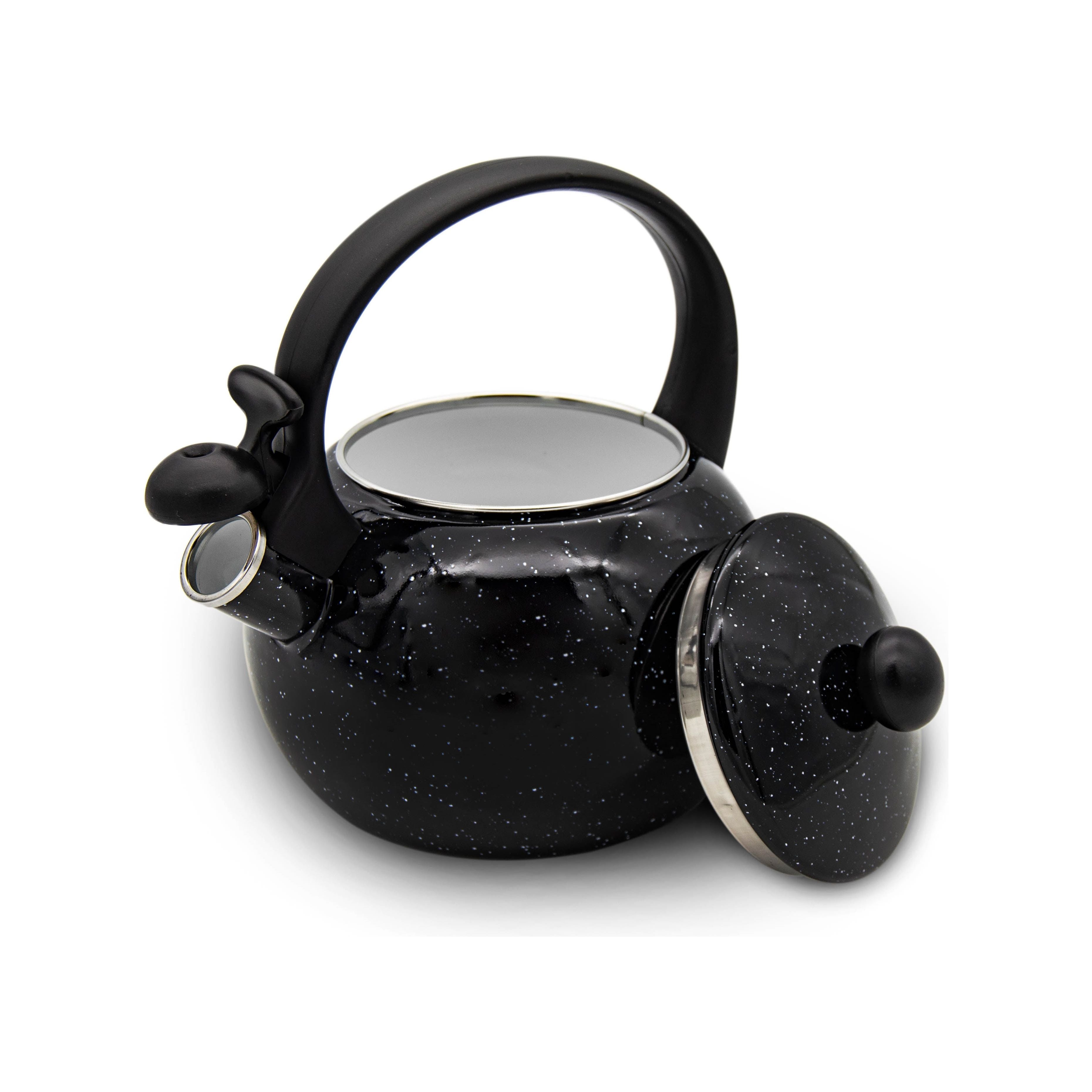 Ben jij op zoek naar een praktische én stijlvolle fluitketel die geschikt is voor inductie? Dan is de Meyerhoff Emaille Fluitketel van 2,2 liter dé perfecte keuze. Deze theepot in fluitketelvorm is vervaardigd uit hoogwaardig staal met emaillelaag, geschikt voor alle soorten fornuizen – inclusief inductie, gas, keramisch en elektrisch. De gelijkmatige warmteverdeling kookt water sneller én energiezuiniger. Het ingebouwde fluitje waarschuwt je wanneer het kookpunt bereikt is, terwijl de hittebestendige handgreep zorgt voor veilig gebruik. En dankzij het moderne zwart marmerdesign voeg je direct stijl toe aan jouw keuken.