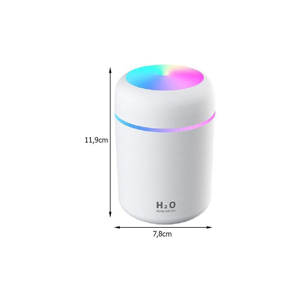 De luchtbevochtiger heeft een inhoud van 300 ml en werkt met een vermogen van 2W. Het heeft 2 achtergrondverlichtingsmodi (wit en RGB) en 2 werkmodi (continu en 3 seconden intermitterend). De afmetingen zijn 11,9 cm x 7,8 cm x 7,8 cm en de kleur is wit.