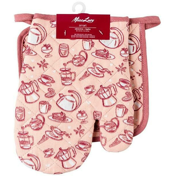 Miss Lucy Smart ovenhandschoen en pan lap set van 2 stuks 18 x 25 cm roze