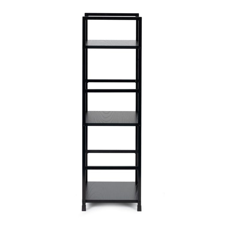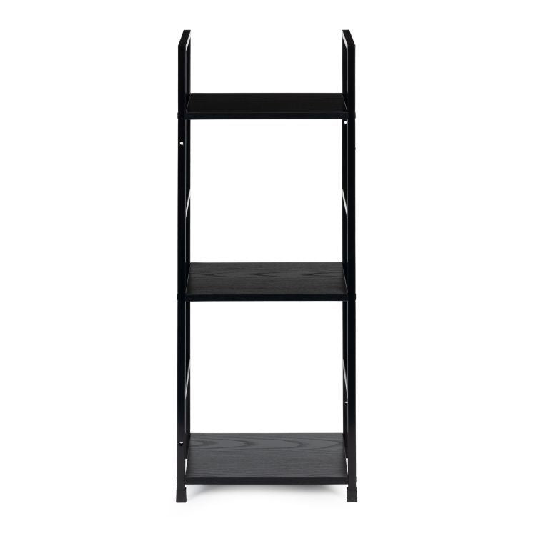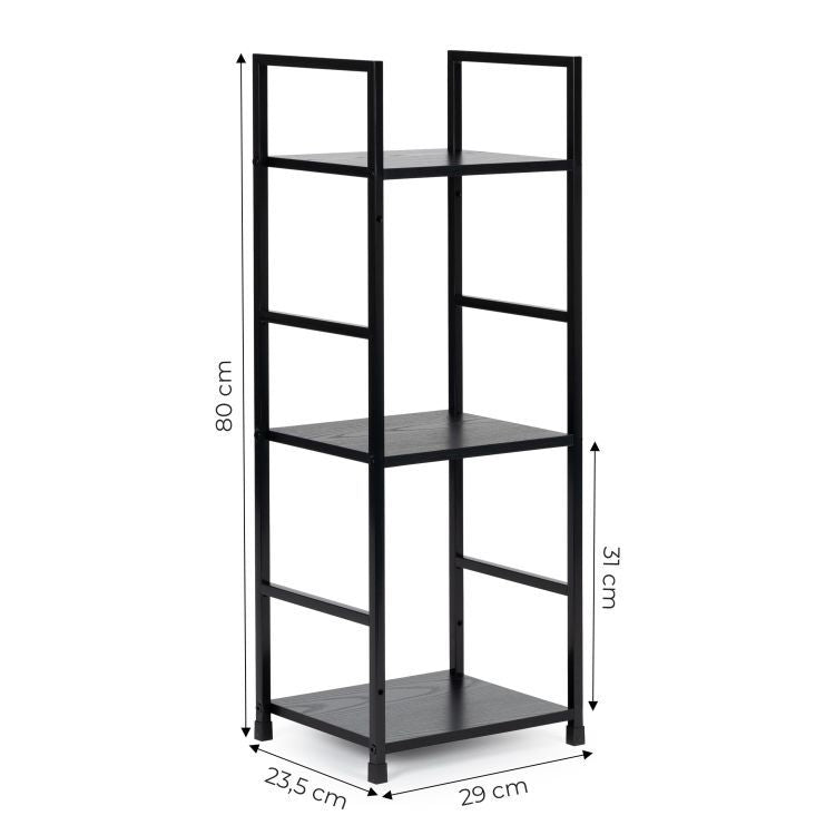 De planken van de boekenkast zijn gemaakt van hoogwaardige MDF-plaat bedekt met een fineer dat hout imiteert. Met een afmeting van 29 x 23,5 cm zijn de planken ruim genoeg om al je spullen georganiseerd en binnen handbereik te houden. De afstand tussen de planken is 31 cm, waardoor je ook hogere objecten kunt plaatsen. Het frame van de boekenkast is gemaakt van stevig gepoedercoat metaal, wat zorgt voor een stabiele en functionele structuur. De poten zijn afgewerkt met speciale beschermvoetjes om je vloer te beschermen tegen krassen.