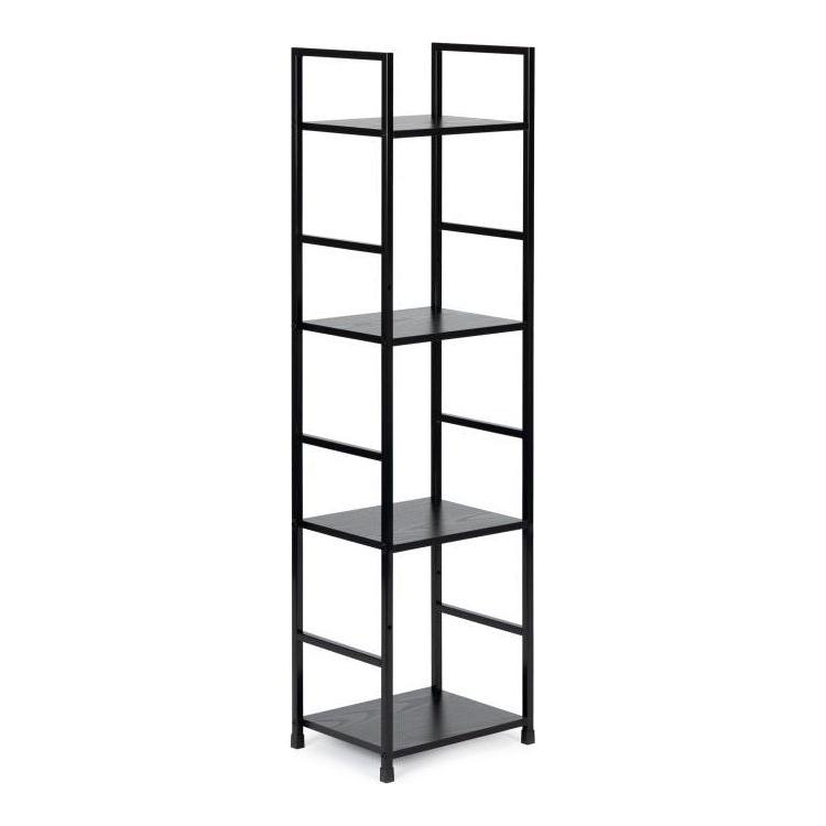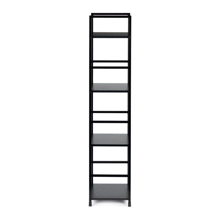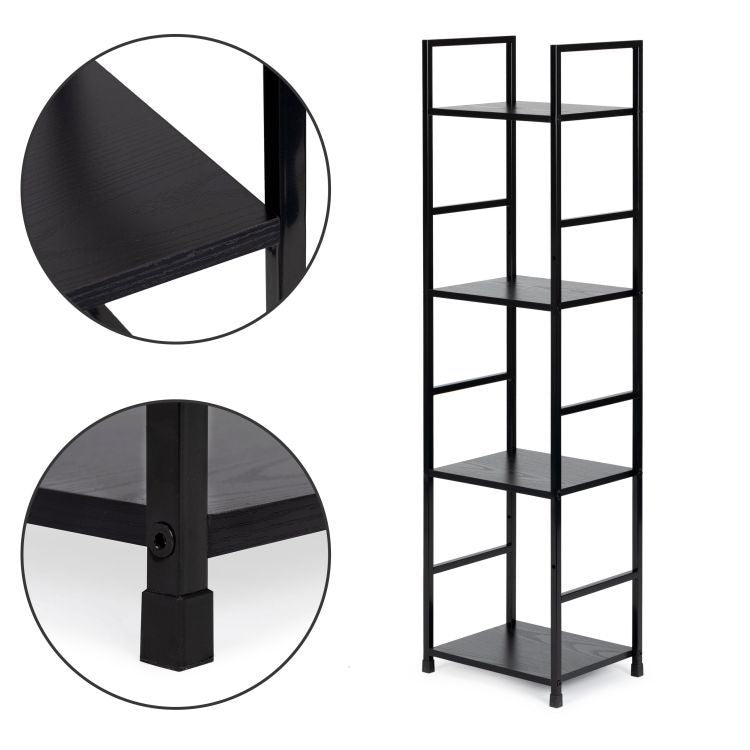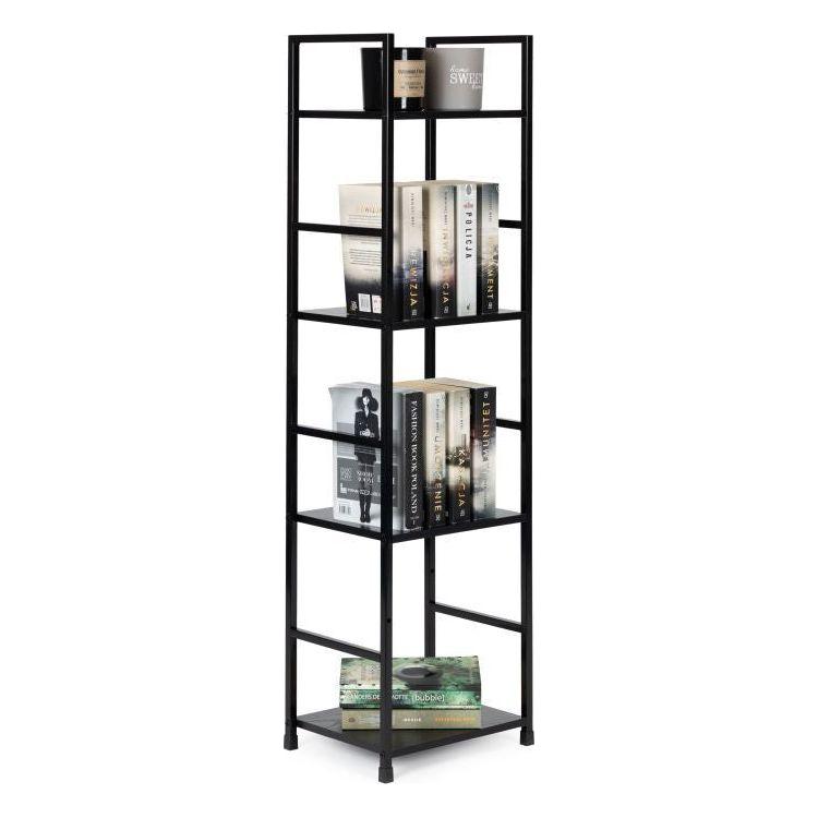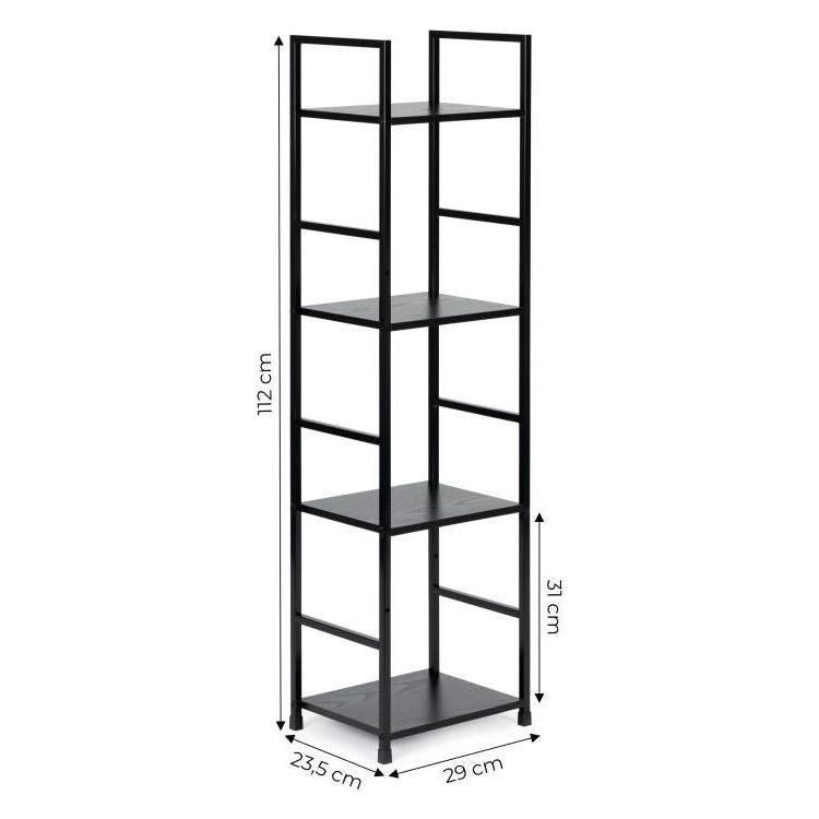 De planken van de boekenkast zijn gemaakt van hoogwaardige MDF-plaat bedekt met een fineer dat hout imiteert. Met een afmeting van 23,5 x 29 cm zijn de planken ruim genoeg om al je spullen georganiseerd en binnen handbereik te houden. De afstand tussen de planken is 31 cm, waardoor je ook hogere objecten kunt plaatsen. Het frame van de boekenkast is gemaakt van stevig gepoedercoat metaal, wat zorgt voor een stabiele en functionele structuur. De poten zijn afgewerkt met speciale beschermvoetjes om je vloer te beschermen tegen krassen.
