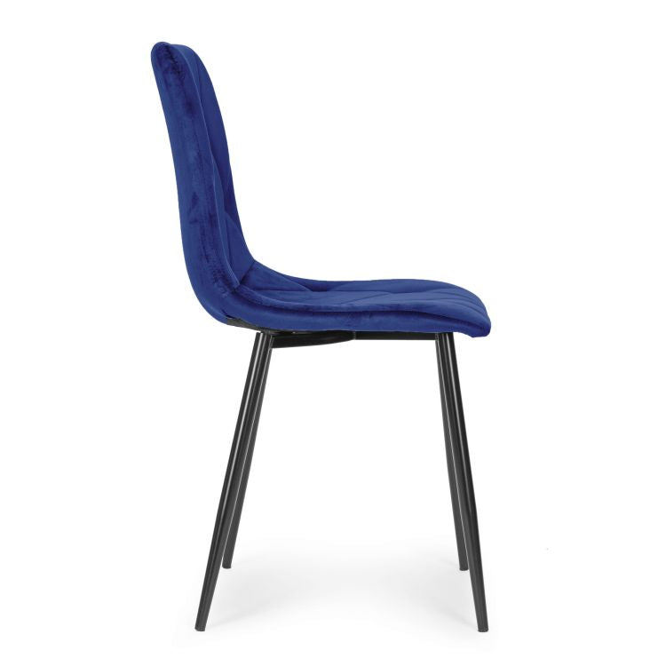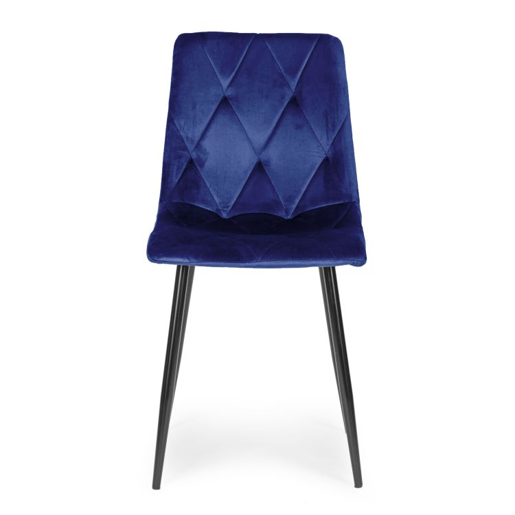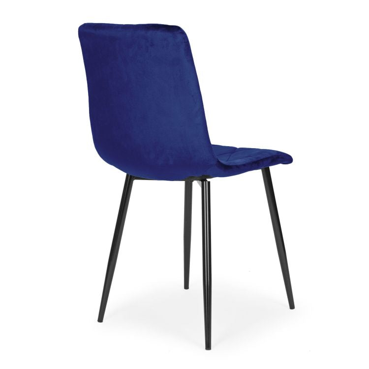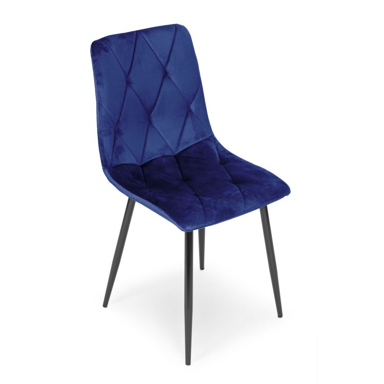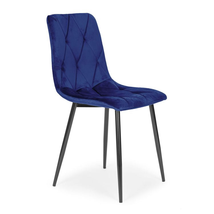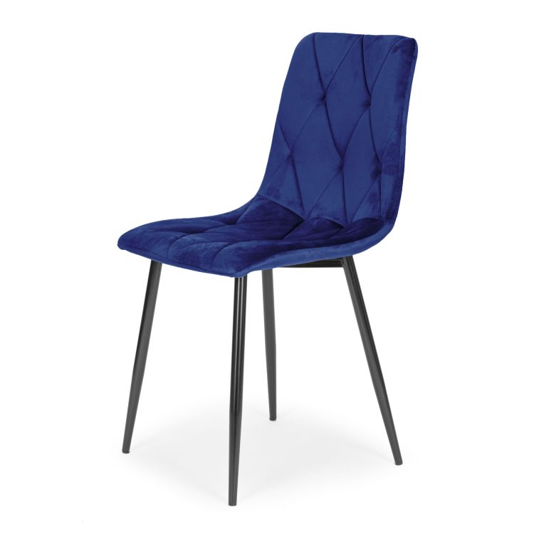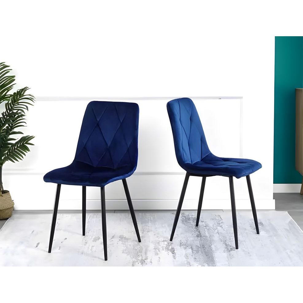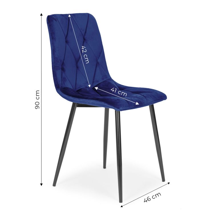 Stijlvolle fluwelen stoelen voor in de eetkamer en woonkamer perfecte toevoeging aan elk interieur, in elegant blauw design met metalen poten.