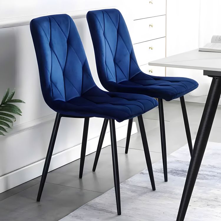 Comfortabele en duurzame eetkamerstoelen met gewatteerde fluwelen bekleding en voorgevormde rugleuning voor ultiem zitcomfort.