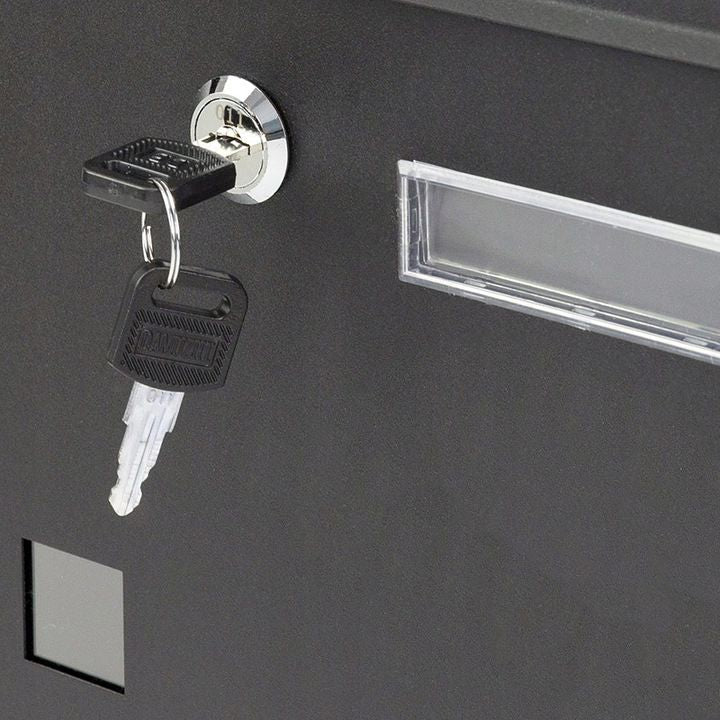 - De box wordt geleverd inclusief bevestigingspinnen en 2 sleutels, zodat je meteen gebruik kunt maken van je nieuwe aankoop.