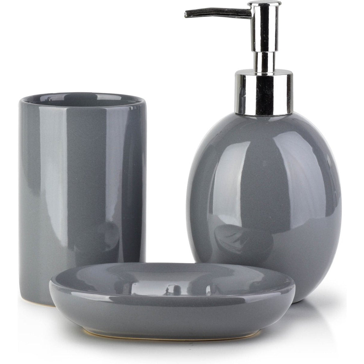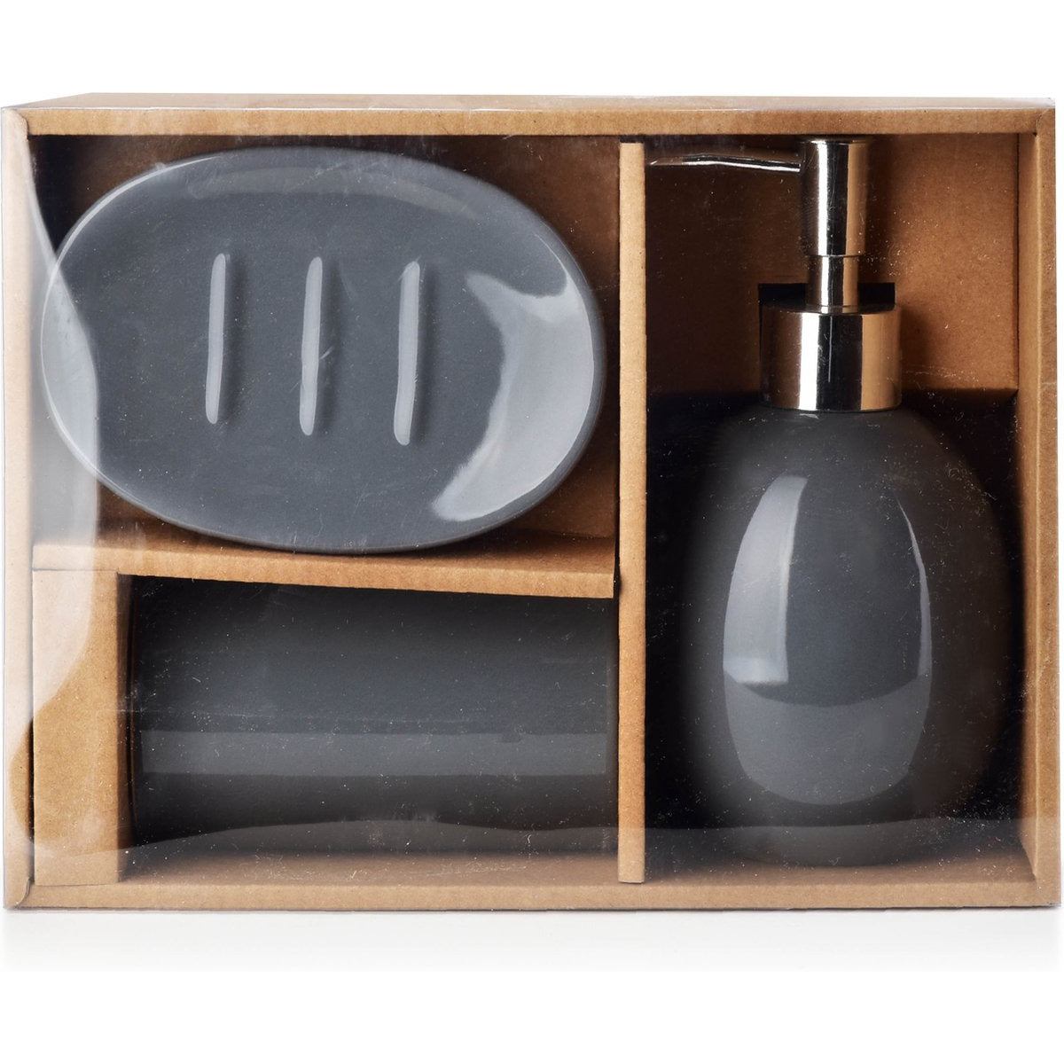 Mondex Sue 3 delige badkameraccessoireset tandenborstelhouder - zeeppompje - zeepbakje keramiek Grijs