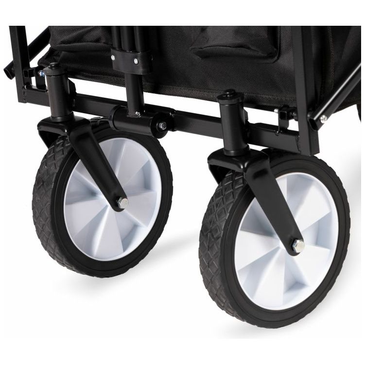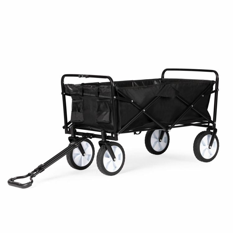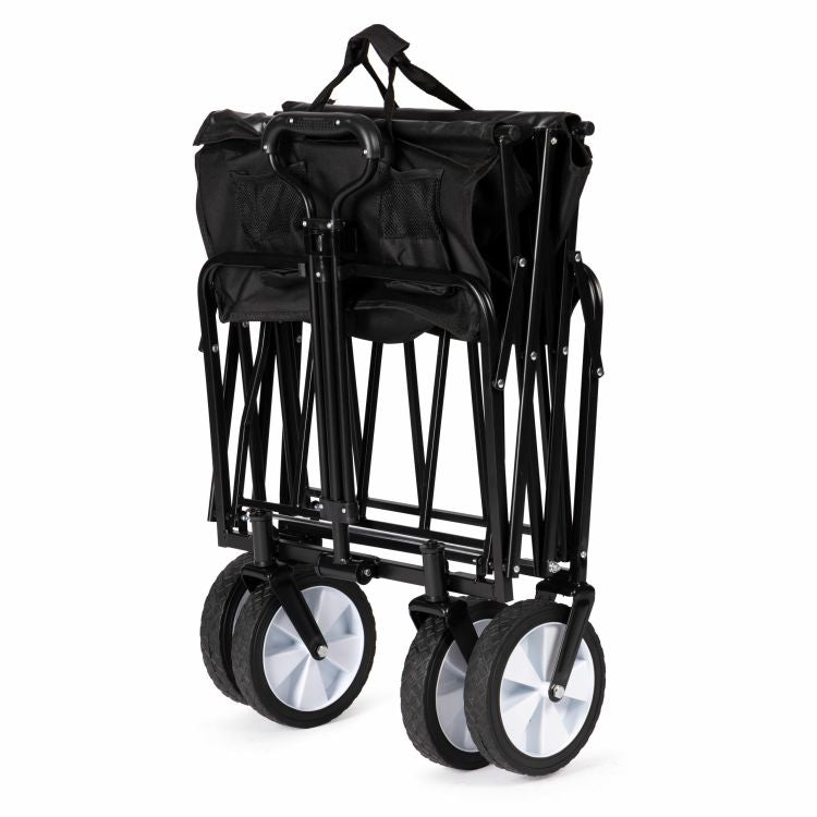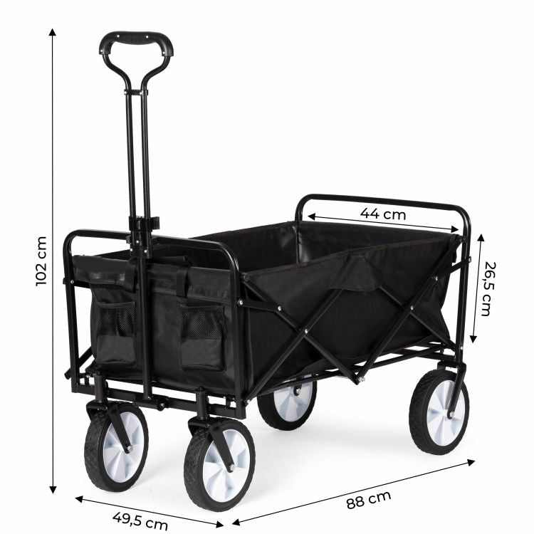 Gemaakt van duurzaam staal en waterafstotend polyester deze bolderkar is stevig en makkelijk op te bergen.