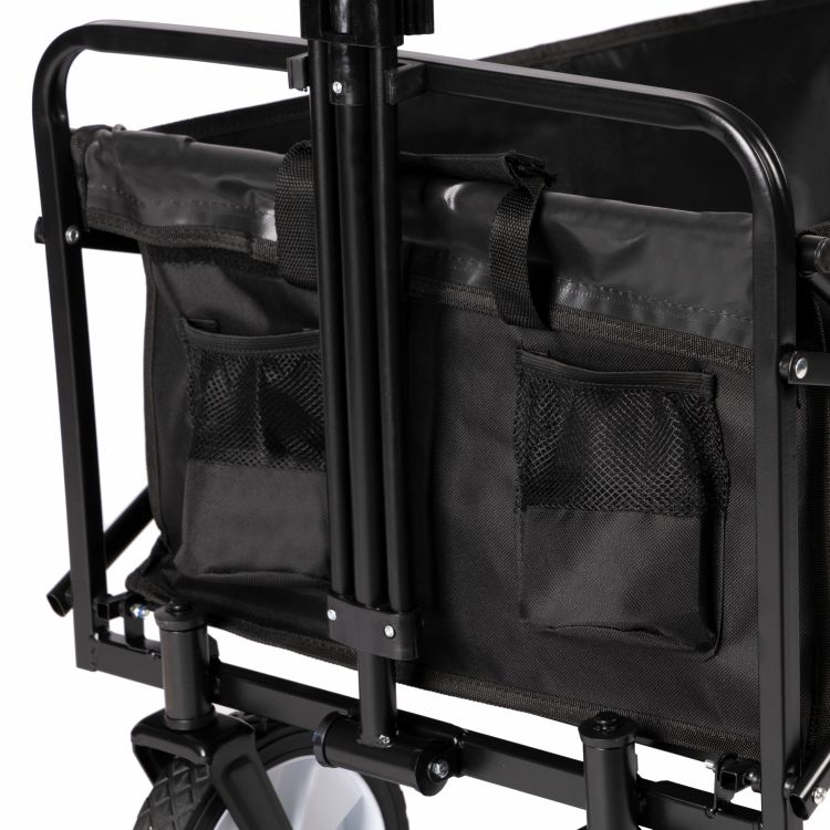De opvouwbare bolderwagen is gemaakt van hoogwaardige materialen. Het frame is gemaakt van staal en de bekleding van stevig polyester met een waterafstotende werking. De kwalitatieve stof is bestand tegen weer en wind. In deze bolderwagen kan maar liefst maximaal 80 kilogram vervoerd worden.