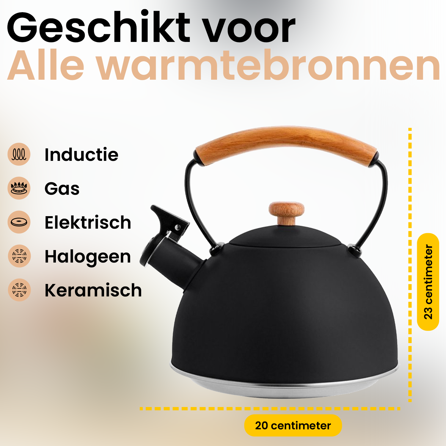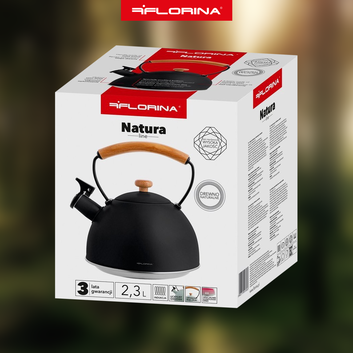 Florina Natura Line fluitketel RVS mat zwart 2.3 Liter - ook geschikt voor inductie